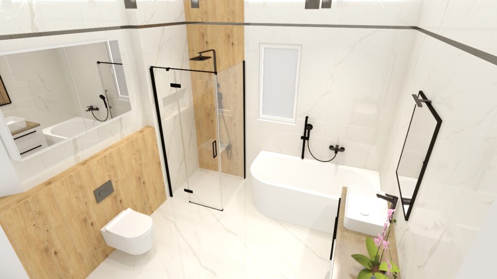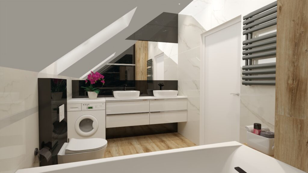 Planując aranżację łazienki, coraz częściej stawiamy na eleganckie połączenia struktur oraz kontrasty, które nadają wnętrzu charakteru. W tej propozycji przedstawiamy