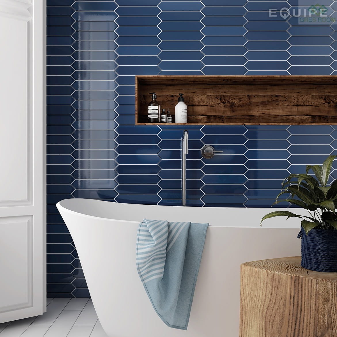 Arrow Adriatic Blue 5×25 GAT I Płytki firmy Equipe; Rozmiar 5×25 cm; Mrozoodporność Nie; Rodzaj powierzchni Błyszcząca; Kolor Granatowy; Ilość w opakowaniu 44 szt.; Przeznaczenie Płytki ścienne; Gatunek Pierwszy Producent: Equipe