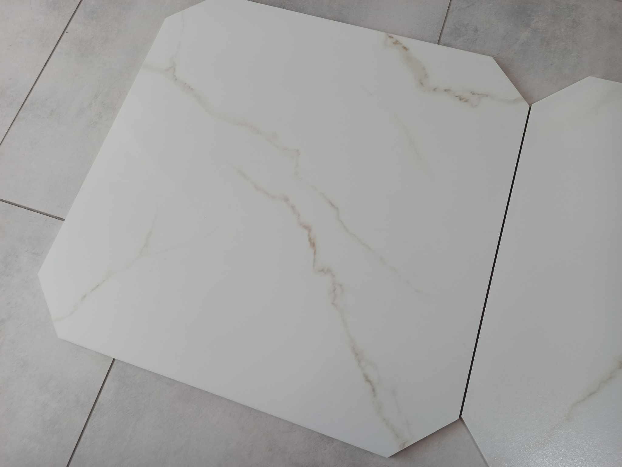 Ilość m2 w opakowaniu: 1,44 m2 Ilość sztuk w opakowaniu: 4 sztuki płytki plus 4 szt narożnika czarnego (w paczce 4 narożniki o wymiarach 10 cm na 10 cm) Gatunek: 1 Mrozoodporność: Tak Rodzaj powierzchni: szkliwiona lappato Zastosowanie: Wewnątrz / Na zewnątrz Sprzedaż produktu: Produkt sprzedawany na pełne opakowania Waga opakowania: 27 kg Produkt nieprefabrykowany – produkt cięty na zamówienie można zamówić płytki ze ściętymi rogami np. 3 rogi ścięte, 2 rogi ścięte, 1 róg ścięty lub cała pytka OKTAGONY możemy wykonać z dowolnej płytki