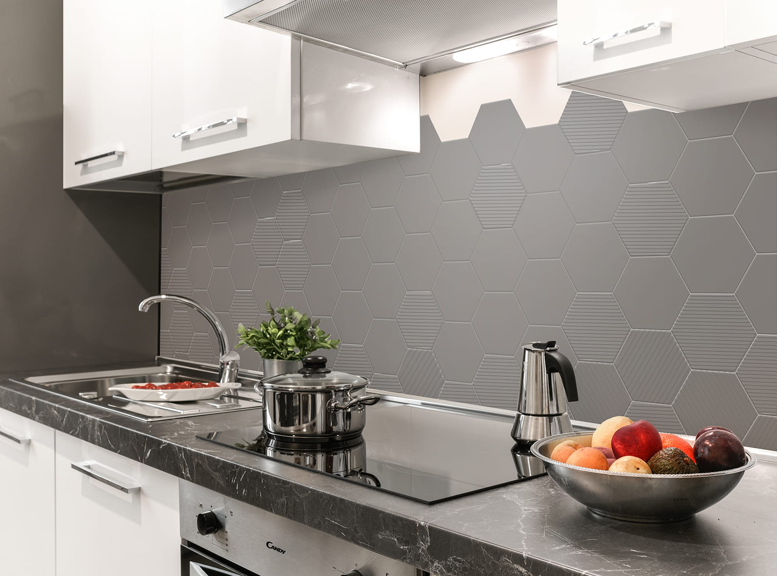 Grubość: 8mm Wymiar plastra 36x25cm Płytka ścienna ceramiczna Gatunek I Kolor szary Kształt: heksagon Produkt Polski z wykorzystaniem włoskich i hiszpańskich materiałów. Mozaika Heksagon Relief Light Grey – opis produktu Charakterystyka ogólna Mozaika Heksagon Relief Light Grey to dekoracyjna mozaika ceramiczna w jasnym, delikatnym odcieniu szarości. Jej struktura reliefowa – delikatne wypukłości – wprowadza grę światła i cienia, nadając powierzchni elegancji i głębi. Tworzy harmonijny, nowoczesny akcent w przestrzeni. Specyfikacja techniczna Materiał: ceramika Przeznaczenie: ściany wewnętrzne (możliwe stosowanie również w mniej obciążonych podłogach) Kształt: heksagon (sześciokąt) Wymiary arkusza: ok. 36 × 25 cm Grubość: około 8 mm Gatunek: I Odcień: jasny szary (light grey) Temperatura wypału: wysoka, co zapewnia trwałość i odporność Reakcja na ogień: klasa A1 — materiał niepalny Ścieralność: klasa 3 — umiarkowana odporność na zużycie Montaż: arkusze na elastycznej siatce montażowej Możliwość docinania: tak — można dopasować do wymiarów ścian lub wnęk Zalety struktura reliefowa nadaje powierzchni wyrazisty, dekoracyjny charakter, neutralny kolor szarości zapewnia uniwersalność aranżacyjną, szkliwienie ceramiczne zwiększa odporność na zabrudzenia i ułatwia czyszczenie, trwałość ceramiki zapewnia długą żywotność, możliwość zastosowania na ścianach i w mniej obciążonych podłogach, elastyczna siatka montażowa umożliwia szybki i precyzyjny montaż. Zastosowania we wnętrzach Mozaika dobrze sprawdzi się w: łazienkach i kabinach prysznicowych jako akcent dekoracyjny, kuchniach – nad blatem lub jako ściana dekoracyjna, salonach i przedpokojach – jako element ściany akcentowej, przestrzeniach komercyjnych, gdzie potrzebna jest elegancka struktura ścienna. Styl i aranżacje Styl nowoczesny i minimalistyczny: heksagonalny kształt i jasna szarość współgrają z prostymi formami i neutralnymi barwami. Styl loftowy / industrialny: relief można zestawić z surowym betonem lub stalowymi dodatkami, tworząc interesujący kontrast. Styl skandynawski / naturalny: mozaika harmonizuje z drewnem, bielą i naturalnymi tkaninami, wprowadzając spokojną atmosferę. Montaż i pielęgnacja Używać elastycznego kleju do płytek ceramicznych. Fugować z użyciem fugi o szerokości dopasowanej do siatki. W miejscach narażonych na kontakt z wodą (np. narożniki prysznica) zaleca się użycie silikonu uszczelniającego. Czyścić miękką ściereczką lub gąbką z łagodnym detergentem. Unikać ostrych padów i agresywnych środków, które mogłyby uszkodzić relief. Arkusze można docinać, by idealnie dopasować je do kształtu ścian i wnęk. Podsumowanie Mozaika Heksagon Relief Light Grey to stylowy i funkcjonalny wybór dla osób ceniących subtelność i elegancję. Dzięki strukturalnej powierzchni i neutralnej kolorystyce mozaika wprowadzi głębię bez nadmiernego przytłoczenia. Jest trwała, uniwersalna i świetnie sprawdzi się zarówno w łazienkach, jak i kuchniach czy reprezentacyjnych przestrzeniach.