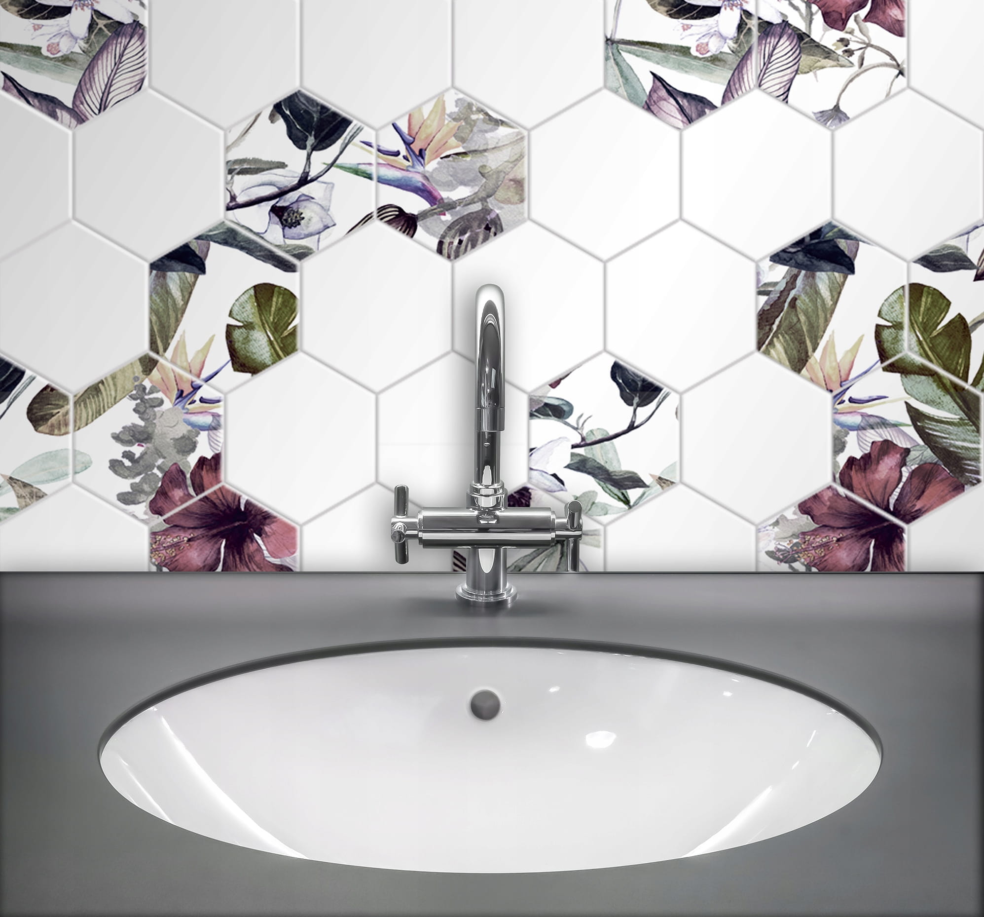 Ceramik Studio Mozaika Heksagon White & Flower