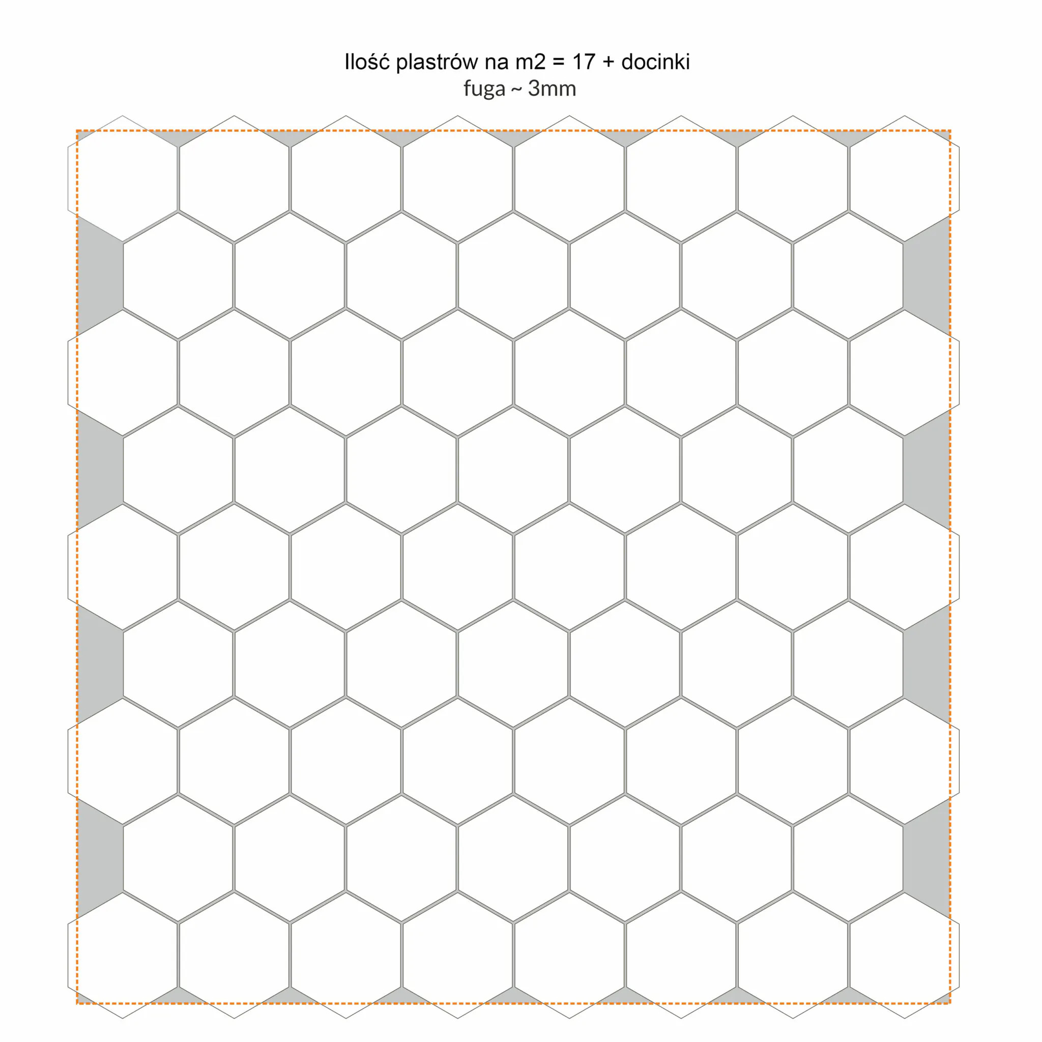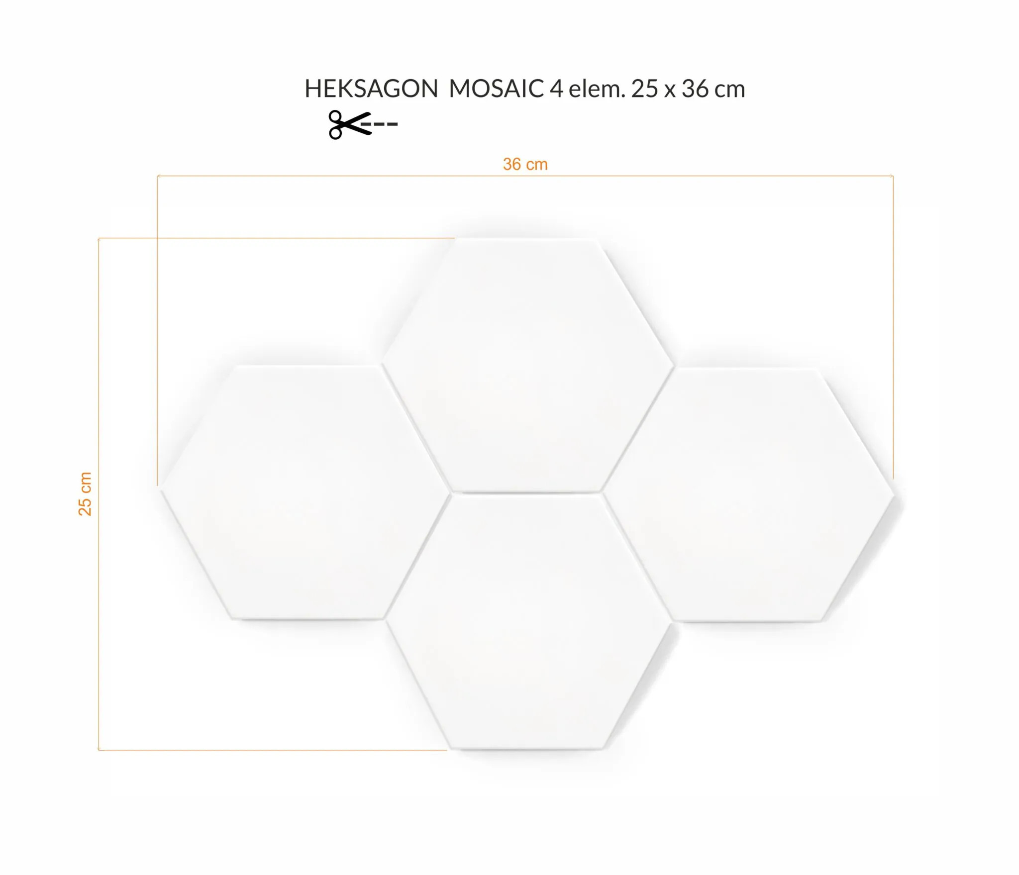 Grubość: 8mm Wymiar plastra 36x25cm Płytka ścienna ceramiczna Kolor biały, Gatunek I Kształt: heksagon Produkt Polski z wykorzystaniem włoskich i hiszpańskich materiałów. Mozaika Heksagon White Mat – opis produktu Charakterystyka ogólna To ceramiczna mozaika ścienna z wydłużonych sześciokątów (heksagonów) o matowej, białej powierzchni. Jej subtelny, neutralny kolor dobrze komponuje się z wieloma stylami aranżacji — od minimalistycznych po klasyczne — a matowe wykończenie daje elegancję i ogranicza refleksy świetlne. Specyfikacja techniczna Materiał: ceramika Kształt: heksagon Kolor: biały, matowy Grubość: około 8 mm Wymiary plastra: około 36 × 25 cm Gatunek: I (wysoka jakość) Reakcja na ogień: materiał niepalny Montaż: na elastycznej siatce montażowej Możliwość docinania: tak — arkusze można przycinać, aby dopasować ich kształt do ścian i narożników Zalety neutralna kolorystyka sprawia, że mozaika jest uniwersalna i łatwa do łączenia z innymi materiałami, geometryczny wzór heksagonów nadaje przestrzeni uporządkowany i nowoczesny charakter, trwałość ceramiki zapewnia odporność na mechaniczne uszkodzenia i zabrudzenia, matowe wykończenie jest eleganckie i mniej podatne na odblaski, elastyczna siatka montażowa umożliwia szybki montaż i precyzyjne dopasowanie, docinanie arkuszy daje dużą elastyczność w projektowaniu powierzchni. Zastosowania we wnętrzach Mozaika Heksagon White Mat sprawdzi się dobrze w: łazienkach — jako dekoracyjne ściany lub akcenty, kuchniach — jako backsplash nad blatem lub dekoracyjna ściana, salonach i przedpokojach — jako stonowany, ale stylowy element wykończeniowy, przestrzeniach komercyjnych — biurach, butikach, recepcjach, gdzie potrzebny jest elegancki i trwały materiał dekoracyjny. Styl i aranżacje Minimalizm i nowoczesność: matowa biel i geometryczny kształt tworzą czysty i uporządkowany efekt, Styl skandynawski: mozaika harmonizuje z naturalnym drewnem i jasnymi dodatkami, Industrialny: może kontrastować z betonem i metalowymi elementami, tworząc surowy, ale elegancki klimat, Klasyczny: biały odcień daje możliwość użycia mozaiki jako neutralnego tła dla bardziej dekoracyjnych dodatków. Montaż i pielęgnacja stosować elastyczny klej do płytek ceramicznych, używać elastycznej fugi dopasowanej do siatki mozaiki, w narożnikach i miejscach narażonych na wilgoć – zastosować silikon uszczelniający, czyścić miękką ściereczką lub gąbką z łagodnym detergentem i unikać agresywnych padów oraz silnych środków chemicznych, arkusze można docinać do kształtu ścian i wnęk, co daje dużą swobodę podczas montażu. Podsumowanie Mozaika Heksagon White Mat to stylowy, neutralny element dekoracyjny z trwałej ceramiki. Jej matowa biel oraz przejrzysty geometryczny wzór sprawiają, że stanowi elegancki i uniwersalny wybór do łazienek, kuchni, salonów i przestrzeni komercyjnych, wprowadzając do wnętrza subtelność i uporządkowany design.