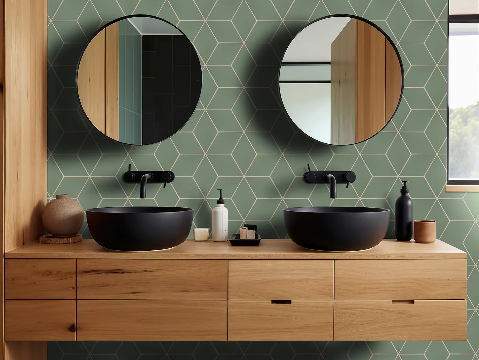 Kolekcja Romb Khaki Mat Mozaika Ceramiczna Wymiary : 21×24 cm Grubość : 8mm Kolor :Khaki Mozaika Romb Khaki Mat – opis produktu Charakterystyka ogólna Mozaika Romb Khaki Mat to ceramiczna mozaika ścienna składająca się z rombowych płytek w stonowanym, naturalnym odcieniu khaki. Matowe wykończenie nadaje jej elegancki i spokojny wygląd, który pasuje zarówno do nowoczesnych, jak i klasycznych wnętrz. Specyfikacja techniczna Materiał: ceramika Kolor: khaki, matowy Kształt: romb Grubość: około 8 mm Wymiar pojedynczego plastra: ok. 21 × 24 cm Przeznaczenie: ściany wewnętrzne, w tym pomieszczenia wilgotne Montaż: na elastycznej siatce montażowej Możliwość docinania: tak — arkusze można przycinać, by dopasować do kształtów ścian Zalety stonowany, naturalny kolor khaki wprowadza spokój i harmonię do wnętrza, matowa powierzchnia ogranicza refleksy świetlne i nadaje subtelny wygląd, geometryczny kształt rombów tworzy nowoczesną strukturę, ceramika jest trwała i odporna na wilgoć, co sprawdza się w łazienkach i kuchniach, elastyczna siatka montażowa ułatwia precyzyjne układanie, możliwość docinania daje elastyczność przy dopasowaniu do nieregularnych powierzchni. Zastosowania we wnętrzach dekoracyjna ściana w łazience, backsplash w kuchni nad blatem, akcent ścienny w salonie lub przedpokoju, element dekoracyjny w przestrzeniach komercyjnych, takich jak biura, gabinety czy butiki. Styl i aranżacje Naturalny / botaniczny: khaki harmonizuje z drewnem i roślinami, Minimalistyczny: geometryczny wzór i stonowana kolorystyka wpisują się w nowoczesną estetykę, Industrialny: dobrze współgra z betonem, stalą i metalowymi akcentami. Montaż i pielęgnacja używać elastycznego kleju do płytek ceramicznych, fugować elastyczną fugą dopasowaną szerokością do mozaiki, w miejscach narażonych na wilgoć zastosować silikon uszczelniający, czyścić miękką ściereczką lub gąbką z łagodnym detergentem; unikać agresywnych środków i ostrych narzędzi, które mogą porysować powierzchnię, arkusze można docinać, aby idealnie dopasować je do kształtu ściany. Podsumowanie Mozaika Romb Khaki Mat to elegancka i trwała mozaika dekoracyjna. Jej neutralny odcień khaki, matowe wykończenie oraz geometryczny wzór sprawiają, że doskonale nadaje się do łazienek, kuchni oraz przestrzeni reprezentacyjnych, wprowadzając do wnętrza harmonię i stylowy charakter.