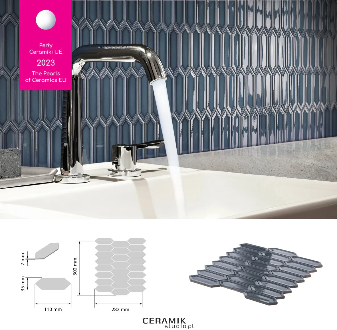 gatunek: gatunek I Mozaika Sorrento Blue Charakterystyka produktu Mozaika Sorrento Blue to elegancka i trwała ceramika w intensywnym, niebieskim odcieniu. Płytki mają połyskujące wykończenie, które podkreśla głębię koloru i nadaje wnętrzu charakterystyczny, nowoczesny wygląd. Każda kostka ma wymiar 35 × 110 mm, a plastry mozaiki mają około 302 × 282 mm. Grubość płytek wynosi 7 mm. Mozaika należy do pierwszego gatunku, co gwarantuje wysoką jakość i trwałość. Zastosowanie Mozaika Sorrento Blue jest przeznaczona głównie na ściany. Idealnie sprawdzi się w łazienkach, kuchniach, kabinach prysznicowych oraz jako dekoracyjne akcenty w salonach czy holach. Dzięki odporności na wilgoć i łatwości czyszczenia, jest praktycznym i estetycznym rozwiązaniem. Cechy i zalety Połyskujące wykończenie – efektowny wygląd i łatwe czyszczenie. Kostki ułożone na siatce montażowej – szybki i wygodny montaż. Odporność na wilgoć i temperaturę – nadaje się do łazienek i kuchni. Możliwość docinania płytek do wymiaru – elastyczność w aranżacji. Odporność na ogień – klasa A1. Montaż i pielęgnacja Podłoże powinno być równe, suche i oczyszczone. Zaleca się użycie białego kleju do płytek. Arkusze mozaiki należy delikatnie docisnąć podczas montażu. Fugowanie można rozpocząć po co najmniej 24 godzinach. Do kuchni i łazienek najlepiej stosować fugi epoksydowe. Połączenia z innymi powierzchniami zabezpieczyć silikonem. Design i estetyka Mozaika Sorrento Blue należy do kolekcji Sorrento, która charakteryzuje się geometrycznym, wyrazistym wzornictwem. Intensywny kolor niebieski dodaje wnętrzom elegancji i świeżości. Połyskujące wykończenie pięknie odbija światło, tworząc dynamiczne efekty w zależności od kąta padania promieni. Podsumowanie Mozaika Sorrento Blue to połączenie wysokiej jakości ceramiki, łatwego montażu i eleganckiego designu. Świetnie sprawdzi się jako dekoracyjny akcent w każdym wnętrzu, podkreślając charakter przestrzeni i dodając jej wyjątkowego stylu.