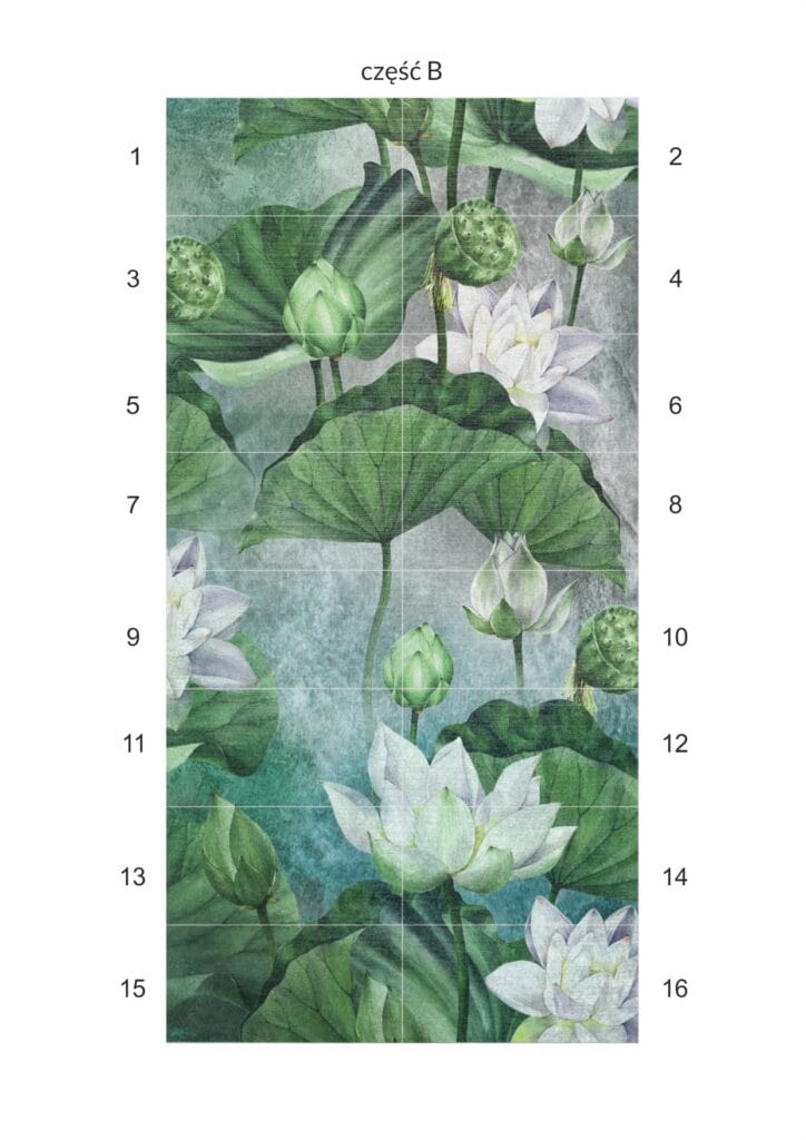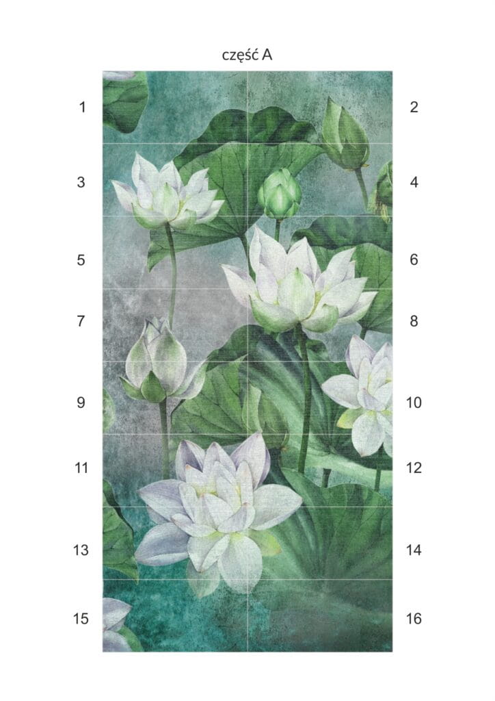 Obraz składa się z 32 elementów Wymiar pojedynczej płytki 30×60 cm Wymiar obrazu w całości 240×240 cm Płytka ścienna rektyfikowana Obraz wielkoformatowy Nenufary 240×240 cm Spokój i harmonia w tropikalnym klimacie Obraz wielkoformatowy Nenufary to panel dekoracyjny, który po ułożeniu z 32 płytek 30×60 cm tworzy efektowną ścianę o wymiarach 240×240 cm. Motyw kwiatów wodnych i zielonych liści wprowadza do wnętrza świeżość i naturalny klimat, two