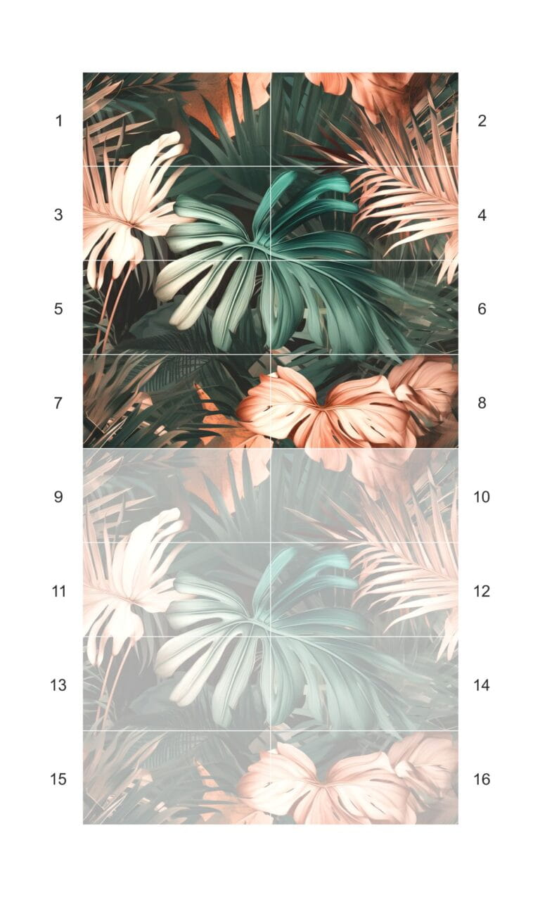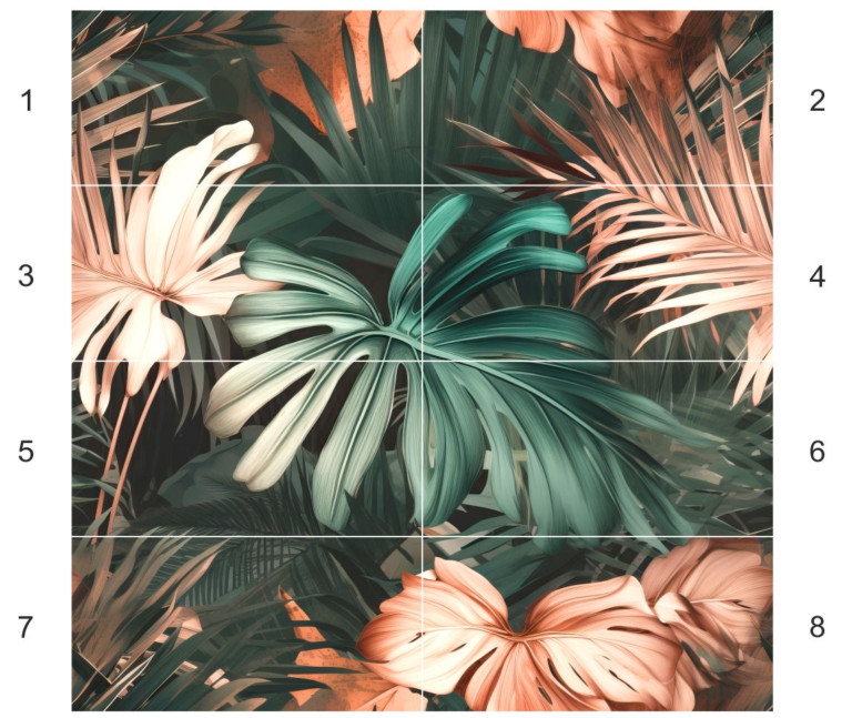 Obraz wielkoformatowy Obraz składa się z 8 elementów Wymiar pojedynczej płytki 30×60 cm Wymiar obrazu w całości 120×120 cm Płytki ceramiczne rektyfikowane Obraz ceramiczny Zanzibar 120×120 cm Egzotyczna zieleń i tropikalny klimat — dekoracyjna ściana z charakterem Obraz Zanzibar 120×120 to dekoracyjny panel ceramiczny, który po ułożeniu z 8 płytek 30×60 cm tworzy efektowną całość o wymiarach 120×120 cm. Motyw tropikalnych liści i int