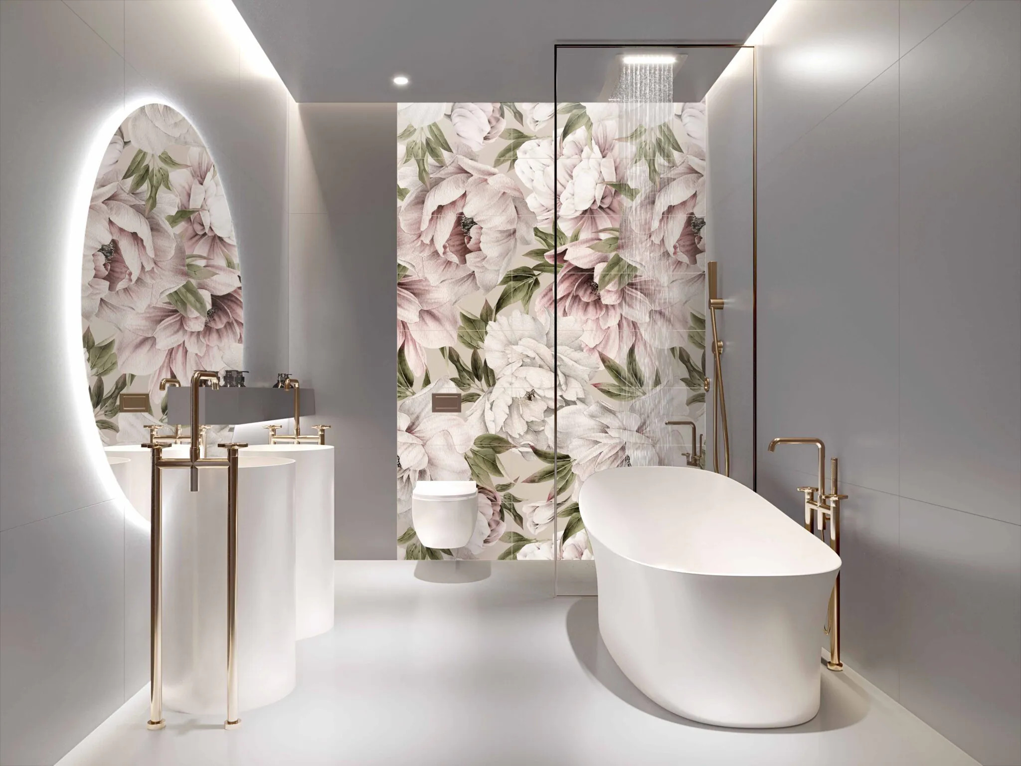 Obraz składa się z 27 elementów Wymiar pojedynczej płytki 30×60 cm Wymiar obrazu w całości 270×180 cm Płytka rektyfikowana Płytka ceramiczna Rose Large Elegancki florystyczny dekor w dużym formacie Płytka ceramiczna Rose Large to wyjątkowa propozycja dla miłośników eleganckich, subtelnych aranżacji. Motyw kwiatowy w odcieniach różu, beżu i delikatnej zieleni tworzy efekt dekoracyjnego obrazu, który wnosi do wnętrza romantyzm, lekkość i ponadczasowy styl. To doskonały wybór do przestrzeni, które mają emanować przytulnością i estetycznym wyrafinowaniem. Najważniejsze cechy produktu • Format dekoracyjny 30×60 cm Płytka stanowi element dużego panelu ściennego. Po ułożeniu tworzy spójny, efektowny mural, idealny jako centralny punkt aranżacji w salonie, sypialni czy łazience. • Wysokiej jakości ceramika prasowana Płytki o grubości 8 mm powstają w technologii prasowania i wysokotemperaturowego wypalania. To gwarantuje trwałość, stabilność i odporność na codzienną eksploatację. • Odporność na wilgoć, chemię i zmiany temperatur Nadruk kwiatowy jest trwale wtopiony w strukturę ceramiki, co zapewnia odporność na wodę, parę wodną, detergenty oraz nagłe wahania temperatury. Płytka sprawdzi się w łazience, kuchni i pomieszczeniach wilgotnych. • Niepalność i bezpieczeństwo użytkowania Produkt jest niepalny, co pozwala stosować go także w pobliżu źródeł ciepła — np. nad kuchenką, przy piecu dekoracyjnym czy kominku elektrycznym. • Łatwy i precyzyjny montaż Płytki można łączyć z innymi kolekcjami ceramiki. Do montażu wystarczą standardowe kleje do płytek. Zalecana szerokość fugi to minimum 2 mm. • Wyjątkowa estetyka — kwiaty w pastelowych barwach Motyw róż i peonii zachwyca subtelnością i dbałością o szczegóły. Taka dekoracja doskonale współgra z meblami w stylu klasycznym, romantycznym, nowoczesnym, boho oraz glamour. Zastosowanie — gdzie Rose Large prezentuje się najlepiej Łazienka — elegancka ściana nad wanną lub w strefie prysznicowej. Salon — dekoracyjna ściana za sofą lub telewizorem. Sypialnia — efektowne tło za łóżkiem. Przedpokój i korytarz — artystyczny akcent w przestrzeniach wejściowych. Kuchnia — stylowa dekoracja nad blatem lub w jadalni. Biura, gabinety, hotele, salony beauty — idealny element reprezentacyjny. Dlaczego warto wybrać płytkę Rose Large To nie tylko płytka, ale prawdziwy obraz ceramiczny, który odmienia przestrzeń i nadaje jej wyjątkowego charakteru. Łączy w sobie wysoką estetykę, trwałość, odporność na wilgoć i łatwość w utrzymaniu. Jest idealnym rozwiązaniem dla osób poszukujących efektownego dekoru ściennego w ponadczasowej, eleganckiej odsłonie.