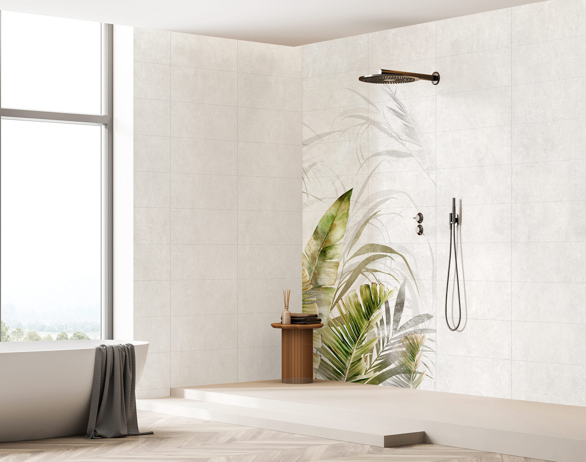 Obraz wielkoformatowy Obraz składa się z 18 elementów Wymiar pojedynczej płytki 30×60 cm Wymiar obrazu w całości 270×120 cm Płytki ceramiczne rektyfikowane Obraz wielkoformatowy Amazonia Beige B 270×120 cm Tropikalny motyw i elegancka dekoracja wnętrz Amazonia Beige B to dekoracyjny panel ceramiczny, który po ułożeniu tworzy spójną powierzchnię ścienną o wymiarach 270×120 cm. Motyw tropikalnych liści na ciepłym, beżowym tle wnosi do wnętrza naturalny charakter, subtelną elegancję i relaksującą atmosferę. Idealna do łazienek, salonów, sypialni, holi oraz przestrzeni użytkowych, którym chcemy nadać unikalny styl i przytulny klimat. Najważniejsze cechy produktu • Duży format – 270×120 cm Panel składa się z 18 płytek o wymiarach 30×60 cm, które po ułożeniu tworzą dekoracyjną powierzchnię ściany, przypominającą obraz lub tapetę, ale z trwałością ceramiki. • Wysokiej jakości ceramika i trwała produkcja Płytki ceramiczne są rektyfikowane, mają grubość 8 mm, co zapewnia stabilny montaż i eleganckie wykończenie. Wzór jest nanoszony cyfrowo i wypalany w wysokiej temperaturze, dzięki czemu obraz zachowuje odporność mechaniczną, chemiczną i termiczną. • Odporność na wilgoć Produkt nadaje się do pomieszczeń mokrych, takich jak łazienki czy strefy prysznicowe, co zwiększa jego funkcjonalność w aranżacjach wnętrz. • Odporność ogniowa Płytki są niepalne i posiadają klasę reakcji na ogień A1, co umożliwia bezpieczne zastosowanie w pobliżu źródeł ciepła. • Łatwy montaż i uniwersalność Obraz montuje się standardowymi klejami do ceramiki. Zalecana fuga wynosi minimum 2 mm. Po ułożeniu tworzy elegancką, spójną powierzchnię, którą można łączyć z innymi płytkami lub elementami dekoracyjnymi. • Subtelny, naturalny motyw tropikalny Beżowe tło z tropikalnym motywem liści nadaje wnętrzu ciepły, naturalny i relaksujący charakter, pasując do stylów boho, earthy, slow design czy modern natural. Zastosowanie Amazonia Beige B Łazienki – także w strefach mokrych; Salony i sypialnie – jako efektowna ściana dekoracyjna; Korytarze, holle, przedpokoje – jako reprezentacyjny panel ścienny; Kuchnie – jako dekoracyjna ściana nad blatem lub przy szafkach; Przestrzenie komercyjne – hotele, biura, restauracje, lokale usługowe. Dlaczego warto wybrać Amazonia Beige B Amazonia Beige B łączy dekoracyjny potencjał obrazu ściennego z funkcjonalnością ceramiki. Duży format, trwałość, odporność na wilgoć i ogień oraz naturalny, elegancki motyw sprawiają, że jest idealnym wyborem dla klientów szukających efektownej, trwałej i praktycznej dekoracji wnętrza.