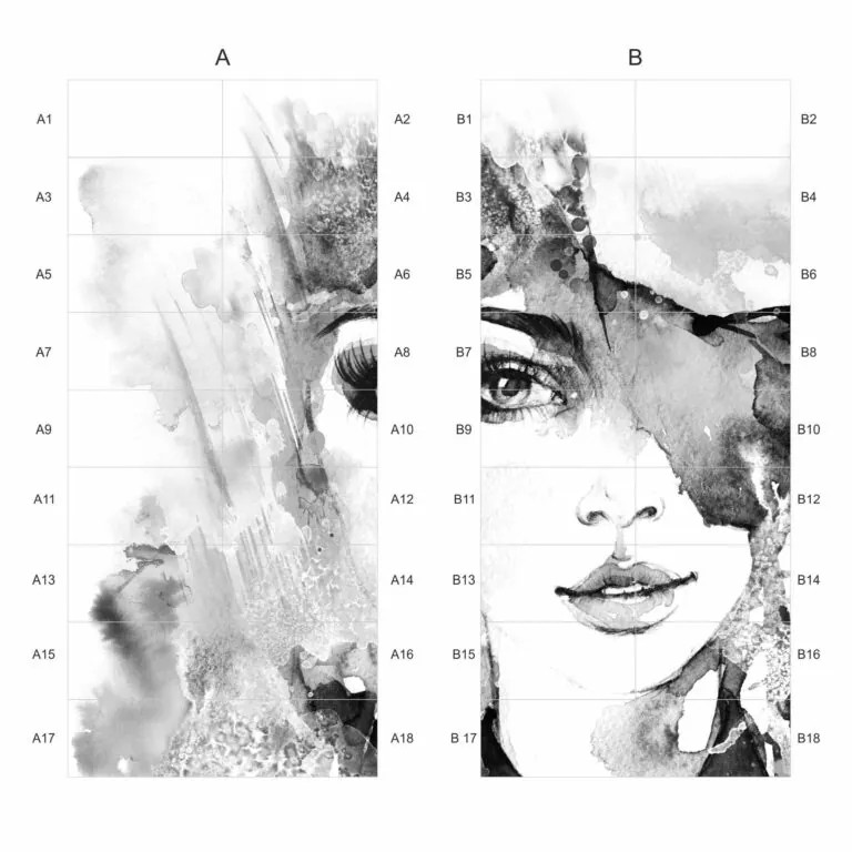 Obraz wielkoformatowy Obraz składa się z 36 elementów Wymiar pojedynczej płytki 30×60 cm Wymiar obrazu w całości 270×240 cm Płytki ceramiczne rektyfikowane Obraz wielkoformatowy Face Arte Large 270×240 cm Artystyczny akcent ścienny — dekoracja z charakterem Face Arte Large to nowoczesny panel ceramiczny, który po ułożeniu tworzy imponującą powierzchnię o wymiarach 270×240 cm. Kompozycja przedstawia abstrakcyjną twarz kobiety — linie, formy i ko