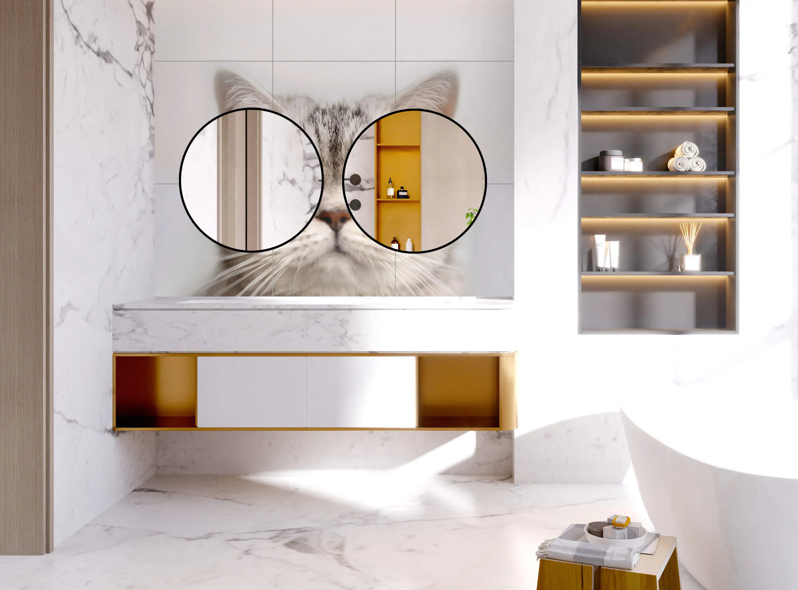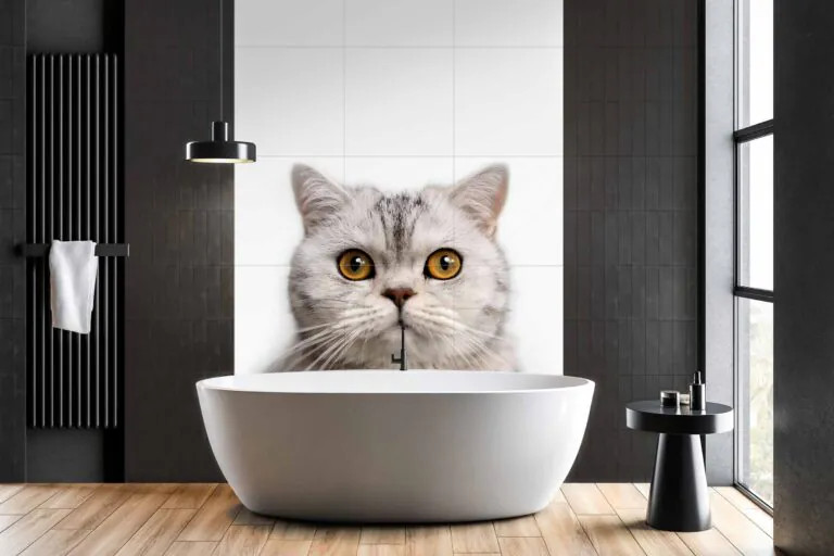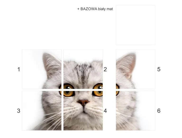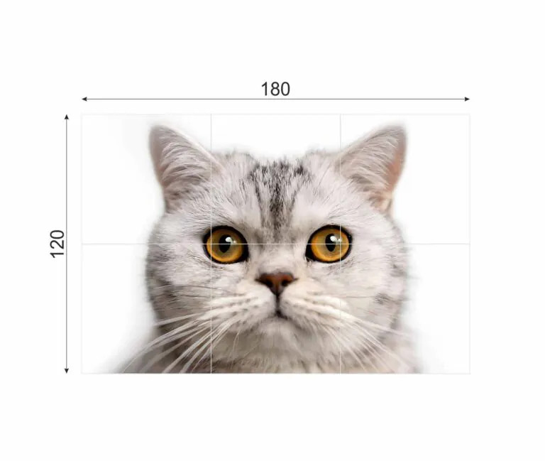Płytka rektyfikowana Obraz wielkoformatowy Kot 120×180 cm Nietypowy akcent wnętrza — dekoracyjna ściana z motywem kota „Kot 120×180” to dekoracyjny panel gresowy, który po ułożeniu tworzy efektowną ścianę o wymiarach 120 × 180 cm, z unikatowym, artystycznym motywem kota. Doskonale sprawdzi się we wnętrzach nowoczesnych, młodzieżo