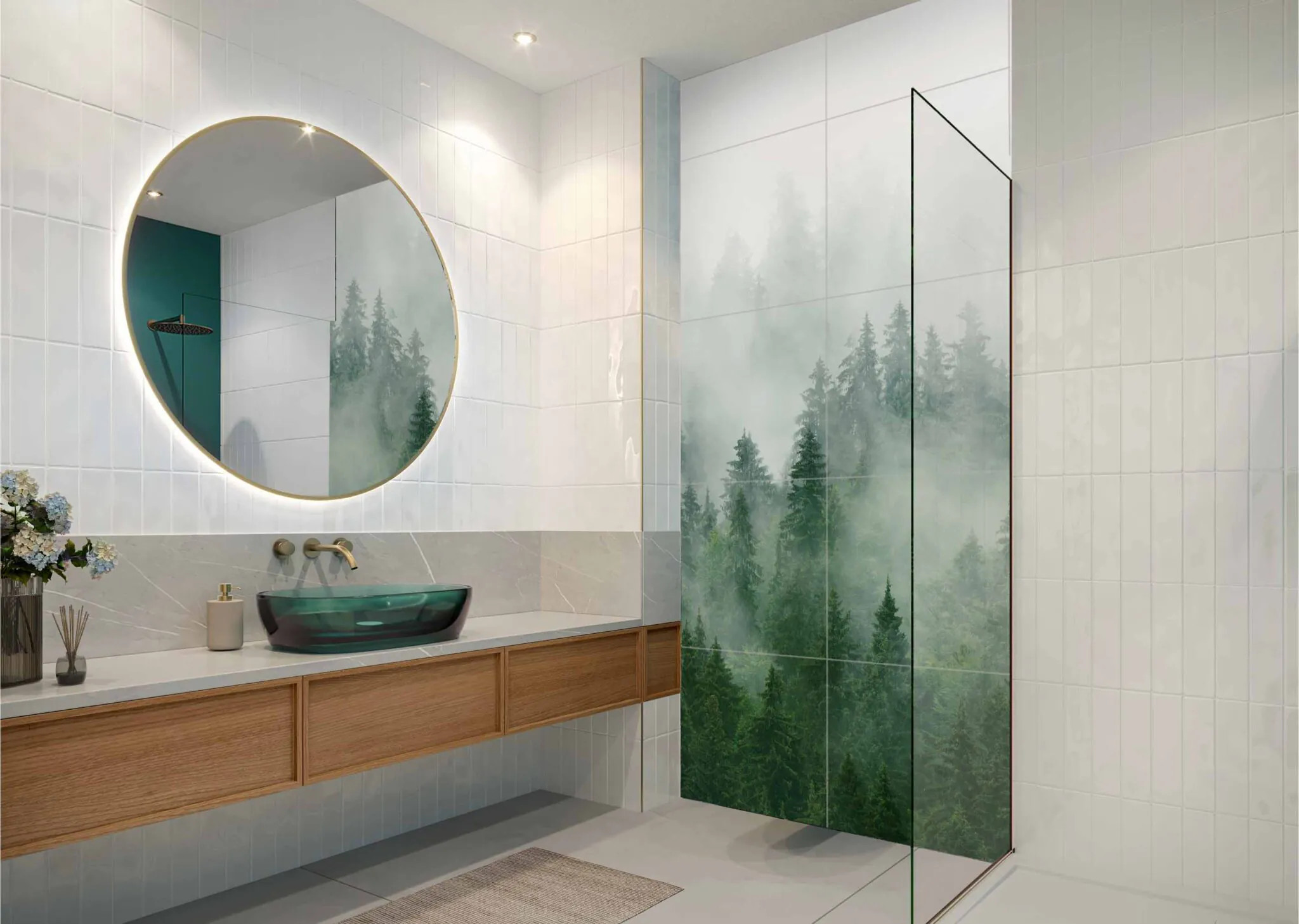 Obraz składa się z 10 elementów Wymiar pojedynczej płytki gresowej 60×60 cm Wymiar obrazu w całości 300×120 cm Płytka rektyfikowana Obraz Wielkoformatowy Gres MISTIC 300×120 cm Wyjątkowa dekoracja ścienna inspirowana naturą Obraz wielkoformatowy MISTIC to elegancka i nowoczesna dekoracja wykonana z gresu, która pozwala stworzyć efektowną, spójną kompozycję ścienną o wymiarze 300×120 cm. Subtelna grafika inspirowana mglistym, leśnym krajobrazem wprowadza do wnętrza atmosferę spokoju i ha