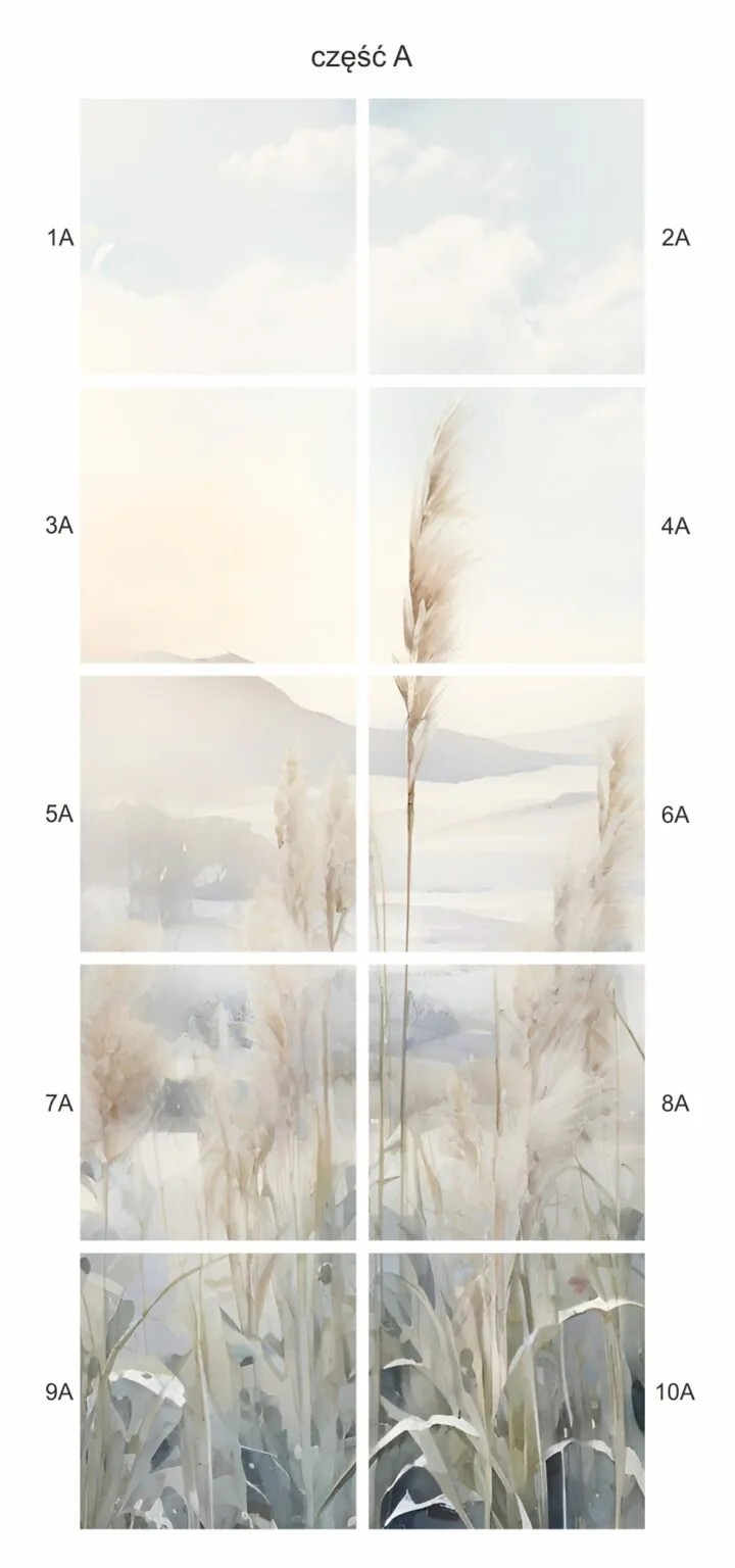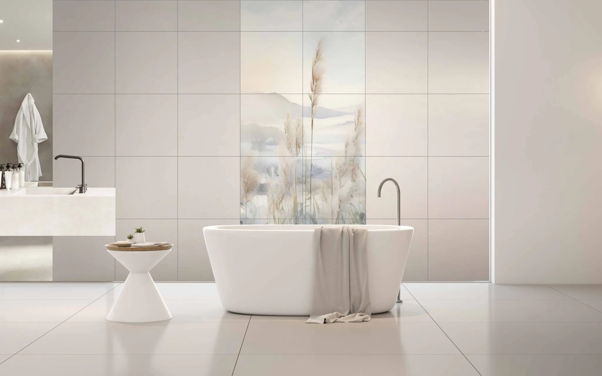 Płytka rektyfikowana Obraz wielkoformatowy Gres Pampas A – dekor gresowy 300×120 cm Nowoczesna dekoracja wielkoformatowa inspirowana naturą Obraz wielkoformatowy Gres Pampas A to unikatowa dekoracja ścienna wykonana z wysokiej jakości gresu, przedstawiająca subtelny, naturalny motyw traw pampasowych. Delikatne, lekkie kompozycje w odcieniach beżu, kremu, szarości oraz b