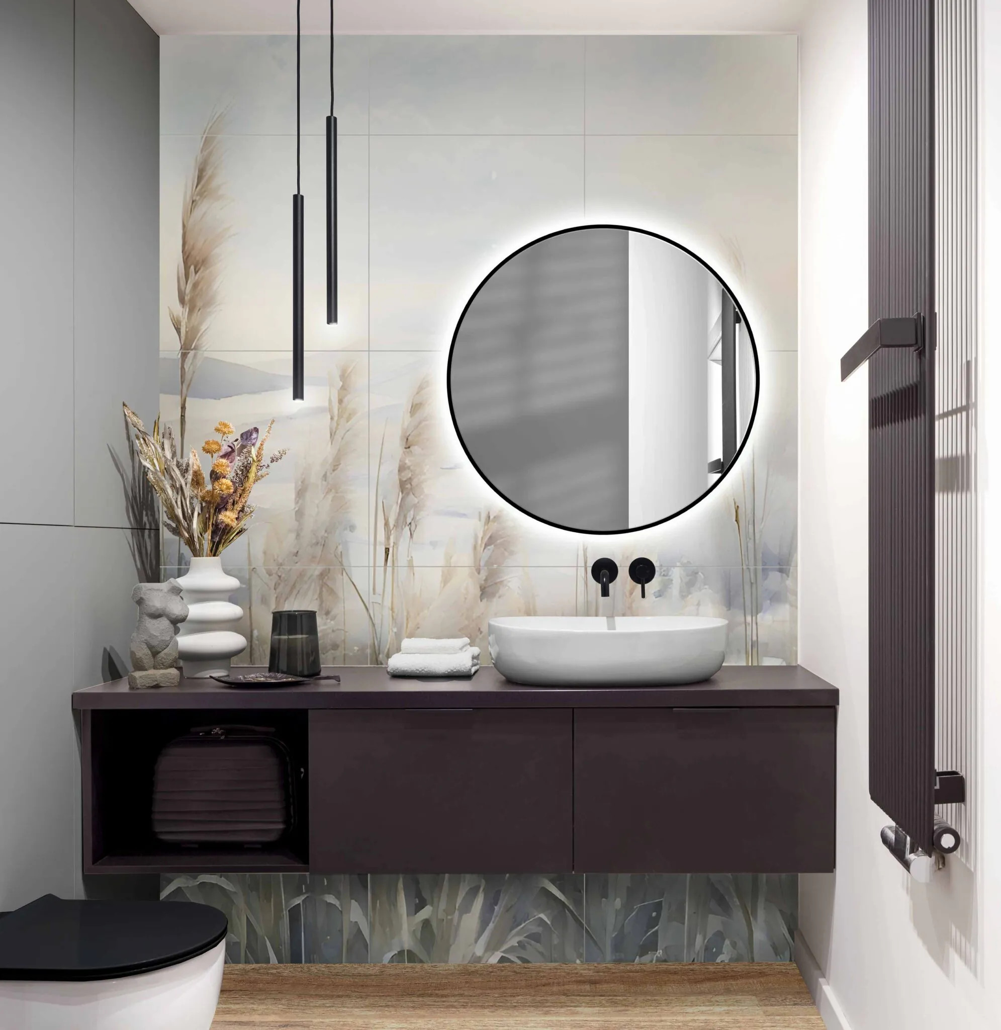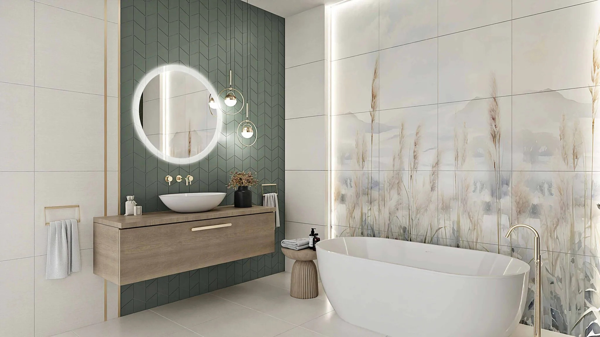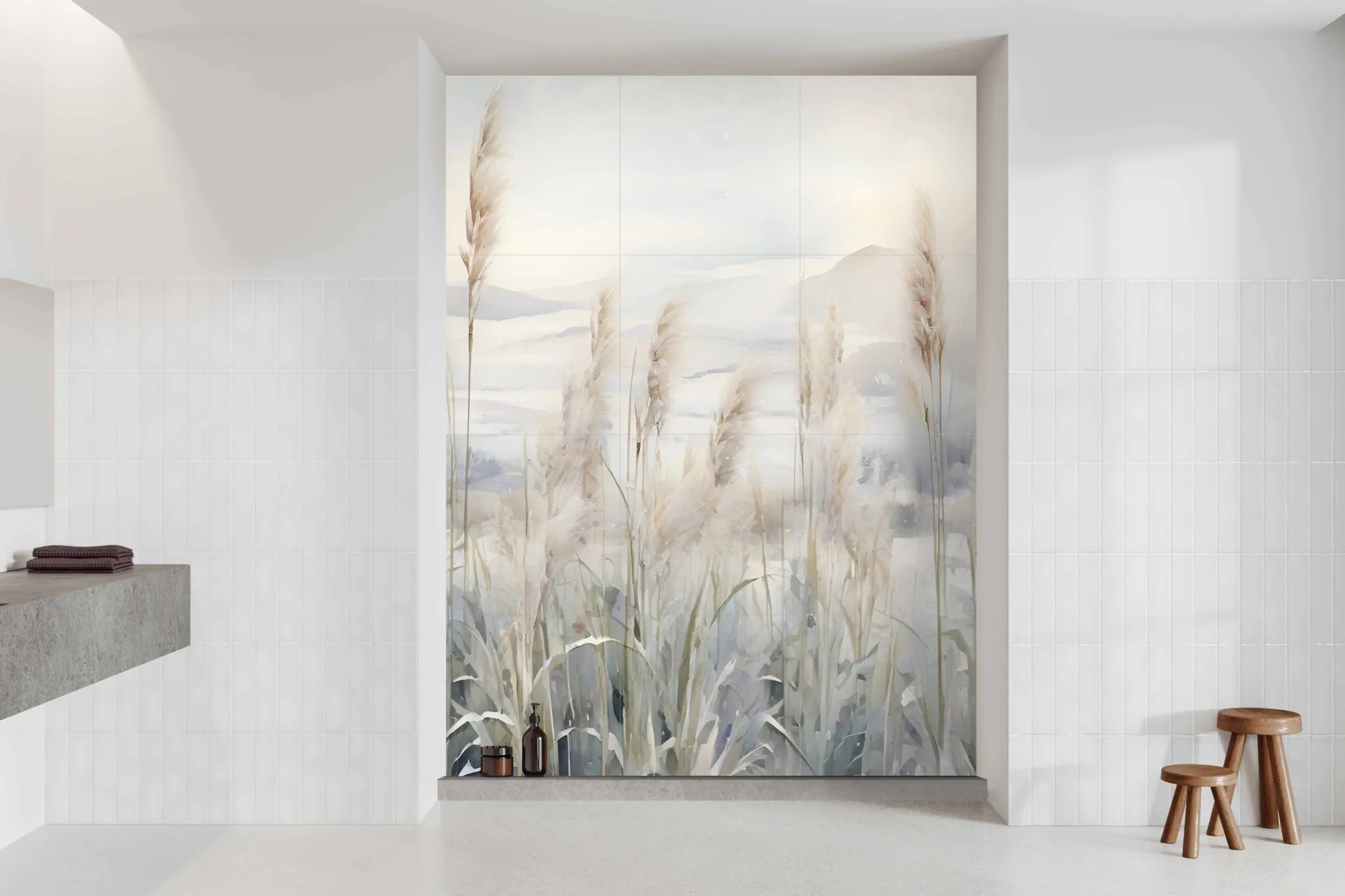 Czyszczenie: łagodne detergenty + miękka ściereczka . Nie stosować szorstkich gąbek. Obraz wielkoformatowy gres Pampas 300×180 cm – naturalna elegancja w nowoczesnym wnętrzu Wyjątkowa dekoracja ścienna z gresu Obraz wielkoformatowy Pampas 300×180 cm to połączenie sztuki i funkcjonalności. Wykonany z najwyższej jakości gresu, składa się z 15 płytek o wymiarach 60×60 cm, które po ułożeniu tworzą spójną kompozycję inspirowaną naturą. Motyw delikatnych źdźbeł trawy pampasowej w odcieniach beżu i szarości wprowadza do wnętrza harmonię, spokój i lekkość. Styl i przeznaczenie Dekoracja Pampas doskonale sprawdza się we wnętrzach w stylu boho, skandynawskim, naturalnym oraz minimalistycznym. Idealnie komponuje się z drewnem, jasnymi kolorami i naturalnymi tkaninami. Świetnie wygląda w salonie, jadalni, sypialni czy przestrzeni wellness, gdzie pełni rolę głównego elementu dekoracyjnego. Trwałość i jakość wykonania Płytki gresowe użyte do stworzenia obrazu charakteryzują się: Niską nasiąkliwością (Eb ≤ 0,5%), co gwarantuje odporność na wilgoć. Wysoką wytrzymałością mechaniczną i odpornością na ścieranie. Odpornością chemiczną i termiczną – mogą być montowane także w pobliżu kominków czy kuchenek. Klasa ognioodporności A1, zapewniająca bezpieczeństwo użytkowania. To produkt klasy premium, który zachowa swój wygląd przez długie lata, niezależnie od warunków eksploatacji. Montaż i pielęgnacja Obraz Pampas montuje się przy użyciu klasycznych klejów do płytek ceramicznych klasy C1 lub C1T. Zalecana fuga ma szerokość minimum 2 mm.