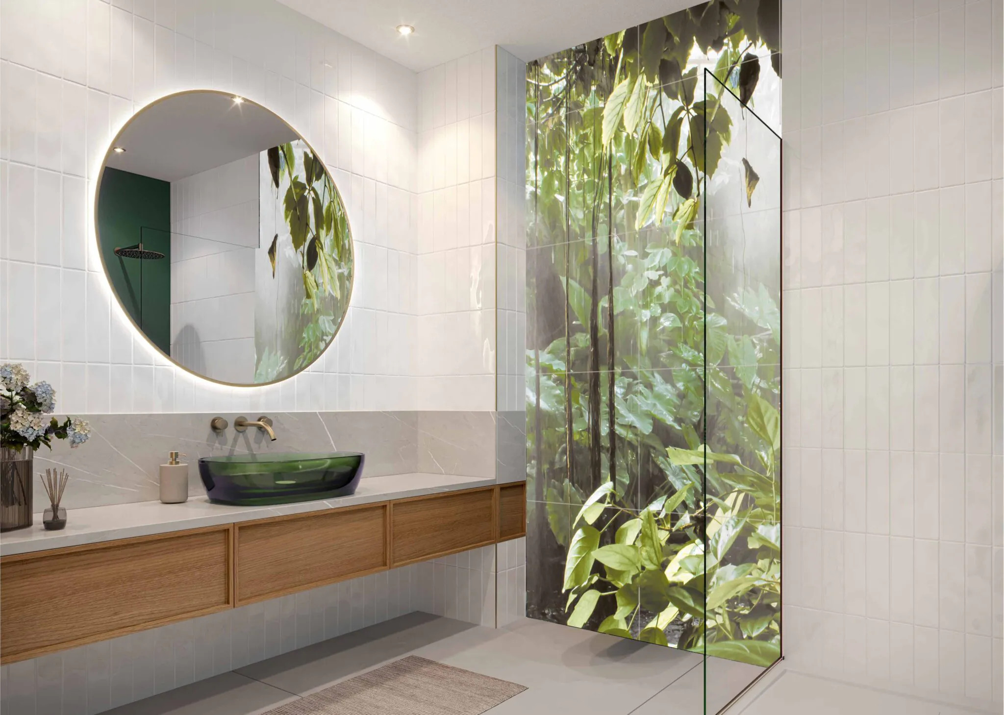 Płytka rektyfikowana, gresowa Obraz wielkoformatowy Rain Forest 300×120 cm Zielony akcent natury we wnętrzu Rain Forest 300×120 to dekoracyjny panel gresowy, który po ułożeniu tworzy efektowną powierzchnię ścienną o wymiarach 300 × 120 cm. Motyw bujnej roślinności w odcieniach zieleni i szarości wprowadza do wnętrza naturalny, relaksujący klimat, nadając przestrzeni przytulny i nowoczesny charakter. Idealny do łazienek, salonów, sypialni, holi, kuchni oraz przestrzeni komercyjnych. Najważniejsze cechy produktu • Duży format — efekt „ściany‑obrazu” Panel składa się z 10 płytek gresowych 60×60 cm, które po ułożeniu tworzą spójną i imponującą dekorację ściany. • Gres o niskiej nasiąkliwości Płytki są odporne na wilgoć, co pozwala na ich stosowanie w łazienkach, kabinach prysznicowych czy kuchniach. • Wysoka trwałość i odporność powierzchni Dekor powstaje przez cyfrowy nadruk ceramiczny i wypał w wysokiej temperaturze, co zapewnia odporność na ścieranie, detergenty, wilgoć i zmiany temperatur. • Odporność ogniowa Płytki są niepalne, co umożliwia bezpieczne zastosowanie w pobliżu źródeł ciepła, takich jak kominki czy kuchnie. • Łatwy montaż i elastyczność aranżacyjna Panel można montować przy użyciu standardowych klejów do gresu, a zalecana szerokość fugi to minimum 2 mm. Płytki można łączyć z innymi powierzchniami, co daje szerokie możliwości aranżacyjne. • Naturalna estetyka i uniwersalny styl Motyw roślinny w odcieniach zieleni pasuje do wnętrz w stylu boho, nowoczesnym, naturalnym czy tropikalnym — zarówno w mieszkaniach, domach, jak i przestrzeniach komercyjnych. Zastosowanie Łazienki i kabiny prysznicowe — dekoracyjna ściana w strefie mokrej. Salony i sypialnie — jako główna ściana dekoracyjna lub akcent przy meblach. Holle, przedpokoje, korytarze — efektowny mural przy wejściu lub w przestrzeni reprezentacyjnej. Kuchnie — dekoracyjna ściana nad blatem lub w strefie wizualnej. Przestrzenie komercyjne — biura, hotele, gabinety, lokale usługowe — trwała i efektowna dekoracja ścienna. Dlaczego warto wybrać Rain Forest 300×120 Rain Forest 300×120 łączy w sobie estetykę dekoracyjnego muralu z praktycznością gresu — trwałość, odporność na wilgoć i ogień, łatwy montaż oraz ponadczasowy, naturalny design. To doskonały wybór dla osób, które chcą nadać wnętrzu wyjątkowy charakter i wprowadzić motyw natury w elegancki, nowoczesny sposób.