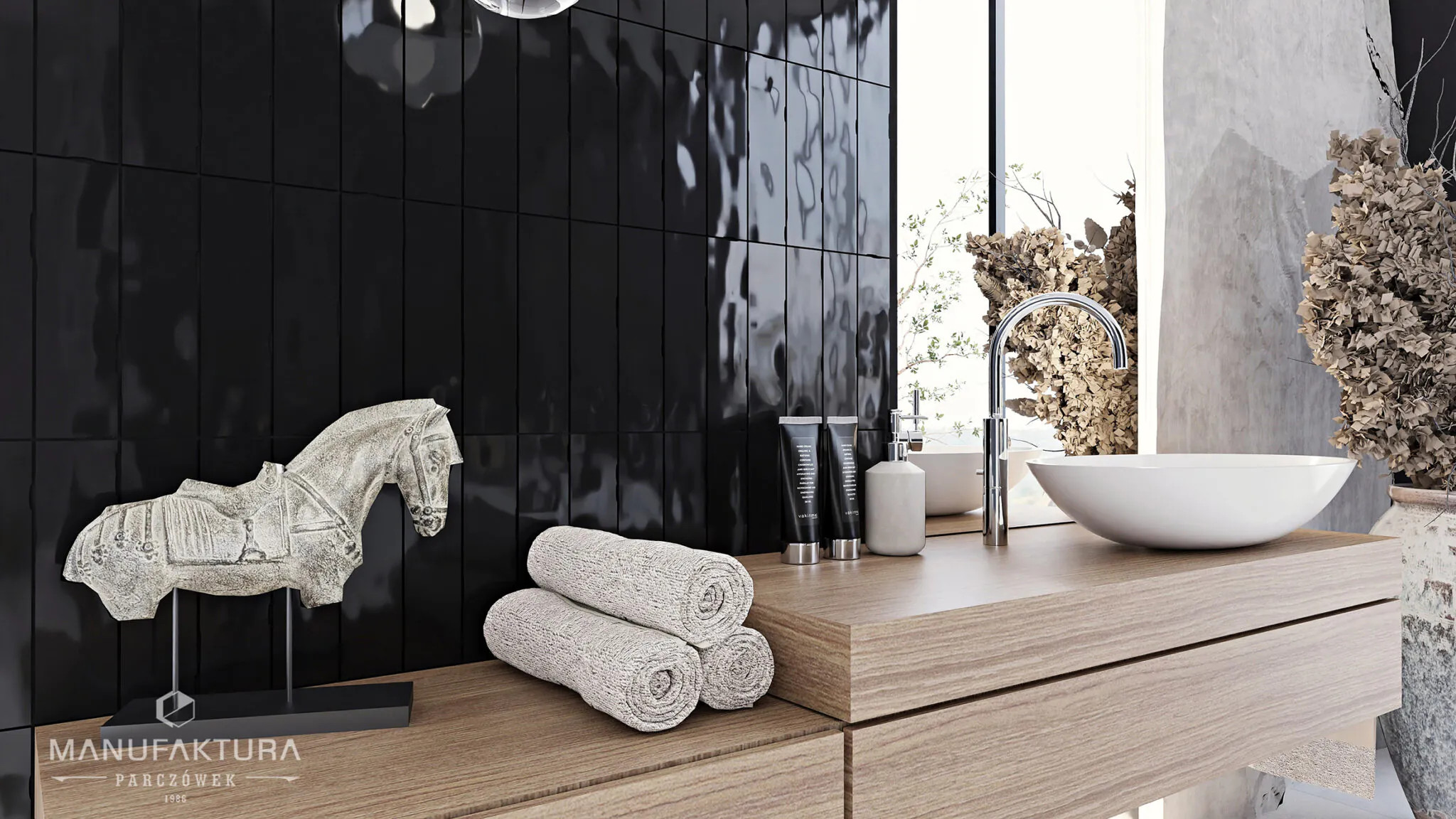 Cena dotyczy 1 m2 płytek- 46 sztuk Kolekcja Cegiełka Black Glossy Płytka ceramiczna Wymiary : 7,4 cm x 29,9 cm Kolor : czarny połysk Płytki posiadają rustykalny brzeg oraz delikatnie falowaną powierzchnię odbijającą światło. Cegiełka Black Glossy – głęboka, lustrzana czerń, która zamienia ścianę w czarne lustro Najbardziej dramatyczna i luksusowa czarna cegiełka na rynku Cegiełka Black Glossy od Ceramik Studio to czysta magia: idealna, atramentowa czerń w pełnym, lustrzanym połysku, która odbija całe pomieszczenie jak obsydianowe lustro. To nie jest zwykła błyszcząca płytka – to prawdziwy statement piece, który sprawia, że łazienka, kuchnia czy salon wyglądają jak z dubajskiego penthouse’u. Wygląd, który wbija w ziemię Gładziutka, lustrzana powierzchnia + lekko zaokrąglone krawędzie = efekt mokrej, polerowanej czarnej skały. Światło dosłownie „ślizga się” po ścianie, tworząc hipnotyczne refleksy. Przy białej lub złotej fudze wygląda jak milion dolarów, przy czarnej – jak jedna, nieskończona tafla. Format 7,5 × 30 cm + rektyfikacja = montaż w kilka godzin i zero widocznych łączeń. Kluczowe parametry techniczne Format: 7,5 × 30 cm Wykończenie: pełny wysoki połysk (black mirror) Mrozoodporność: nie Zastosowanie: ściana wewnątrz – łazienka, kuchnia, salon, garderoba, restauracja Dlaczego Black Glossy znika z magazynów w 48 h? Efekt czarnego lustra – pomieszczenie wydaje się 2× większe i głębsze Wygląda 10× drożej niż kosztuje Idealna pod złote i miedziane baterie oraz uchwyty Zero odcisków palców widocznych na błysku (czarny połysk ukrywa wszystko) Najmocniejszy trend 2025/2026: black glamour & total black Najlepsze (i najodważniejsze) miejsca Cała kabina prysznicowa walk-in – efekt nieskończonej czerni Ściana za umywalką z podświetlanym lustrem Kuchnia – nad czarnym blatem i złotymi uchwytami Ściana TV w salonie – telewizor „znika” w czerni Garderoba i toaletka – czarne lustro w wersji 3D Jedna ściana = wnętrze warte sesji zdjęciowej Cegiełka Black Glossy to najszybszy sposób, żeby w jeden weekend przejść od „zwykłego” do „absolutnie spektakularnego”. cegiełka black glossy, czarna cegiełka błyszcząca, czarne płytki metro połysk, cegiełka lustrzana czerń, płytki czarne glossy 7.5×30, czarna cegiełka do łazienki luxury, płytki black mirror, cegiełka ceramiczna studio black glossy, błyszczące czarne płytki ścienne