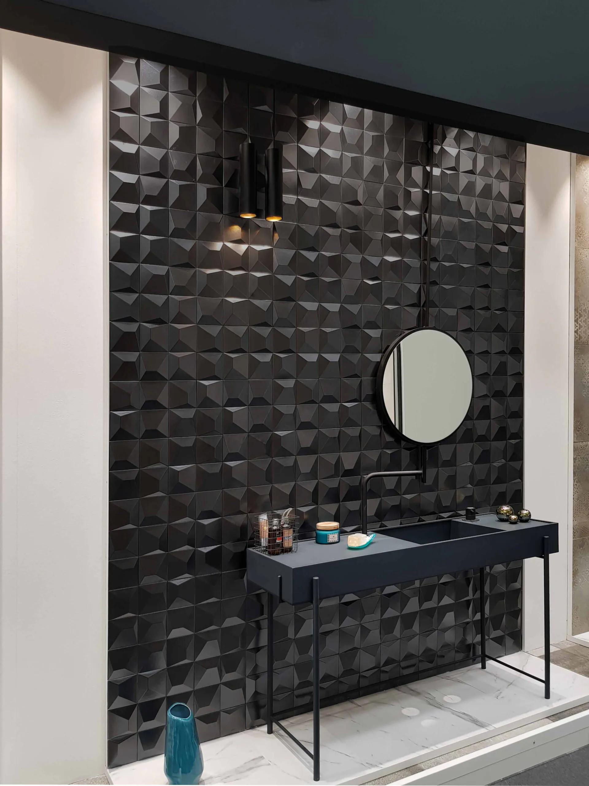 Powierzchnia: Matowa Kolor czarny Płytka ceramiczna Crystal 3D Black Matt (12,5 × 12,5 cm) Elegancka czerń w trójwymiarowym wydaniu Crystal 3D Black Matt to dekoracyjna płytka ścienna o matowym wykończeniu i wyrazistej, geometrycznej strukturze 3D. Idealnie sprawdza się jako efektowny akcent w nowoczesnych, loftowych lub minimalistycznych wnętrzach. Najważniejsze cechy • Format 12,5 × 12,5 cm — wszechstronność aranżacji Mały wymiar umożliwia tworzenie zarówno subtelnych układów mozaikowych, jak i większych kompozycji dekoracyjnych. • Matowa, szkliwiona powierzchnia Szkliwo zapewnia odporność na zabrudzenia i łatwą pielęgnację, a matowe wykończenie dodaje elegancji. • Klasa ścieralności III Dobra odporność na codzienne użytkowanie — idealna przede wszystkim na ściany, a na podłogę w miejscach o małym natężeniu ruchu. • Niepalna (A1) Bezpieczna w pobliżu źródeł ciepła, takich jak kominki czy kuchenne płyty grzewcze. • Wyjątkowy efekt 3D Trójwymiarowa geometria nadaje ścianom głębi i nowoczesnego charakteru. Zastosowanie Łazienki — dekoracyjne ściany, wnęki prysznicowe, akcenty nad wanną. Kuchnie — panel nad blatem, nowoczesne tło podszafkowe. Salon i sypialnia — ściana telewizyjna, obudowa kominka, dekoracje nisz. Przedpokój — elegancki panel, który tworzy mocne pierwsze wrażenie. Wnętrza komercyjne — restauracje, biura, butiki — stylowy akcent, który przyciąga uwagę. Dlaczego warto ją wybrać Crystal 3D Black Matt to płytka, która łączy funkcjonalność ceramiki z wyrazistym designem. Głęboka czerń, matowe wykończenie i geometryczny efekt 3D sprawiają, że doskonale nadaje się do tworzenia nowoczesnych, efektownych aranżacji.