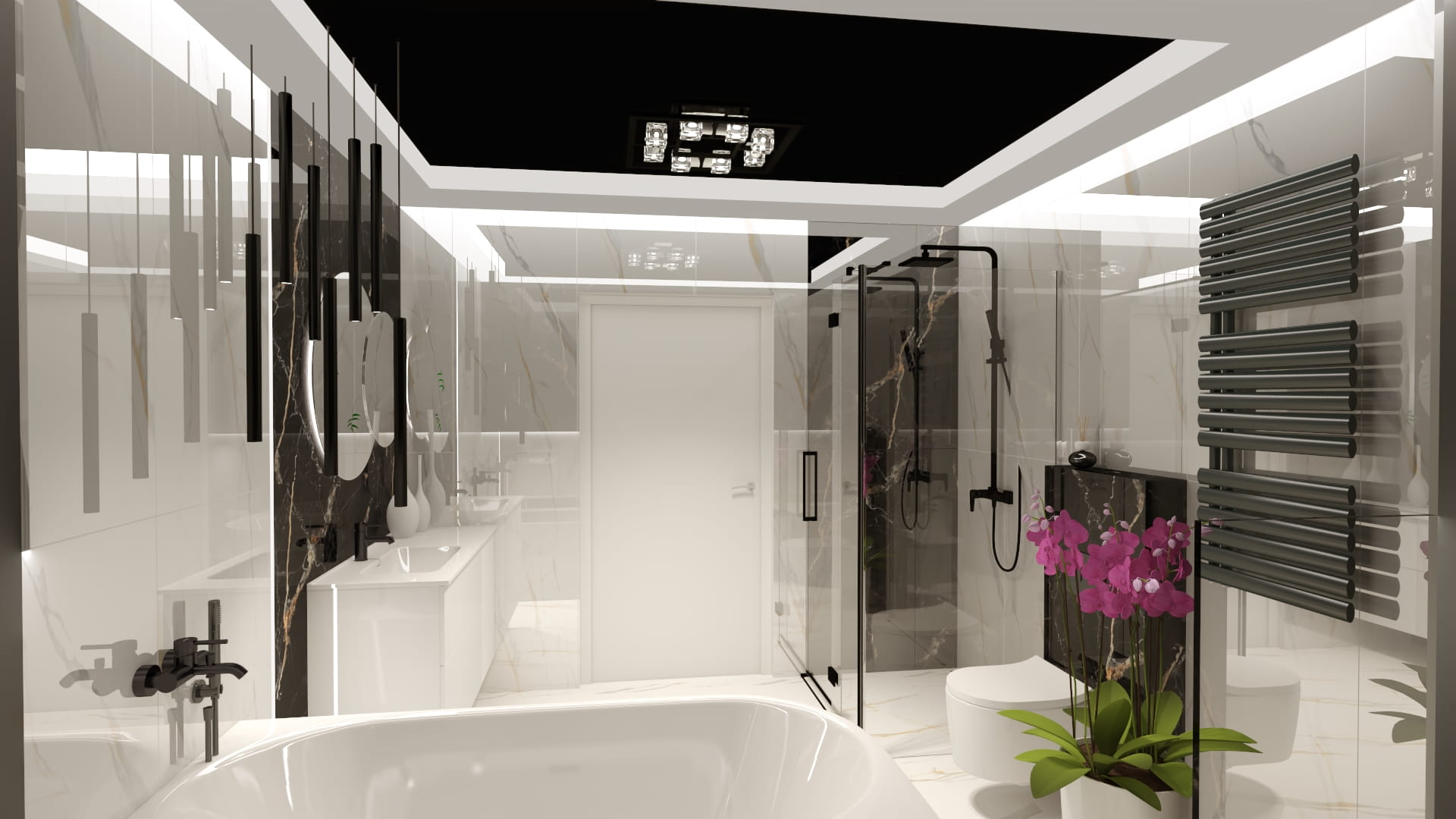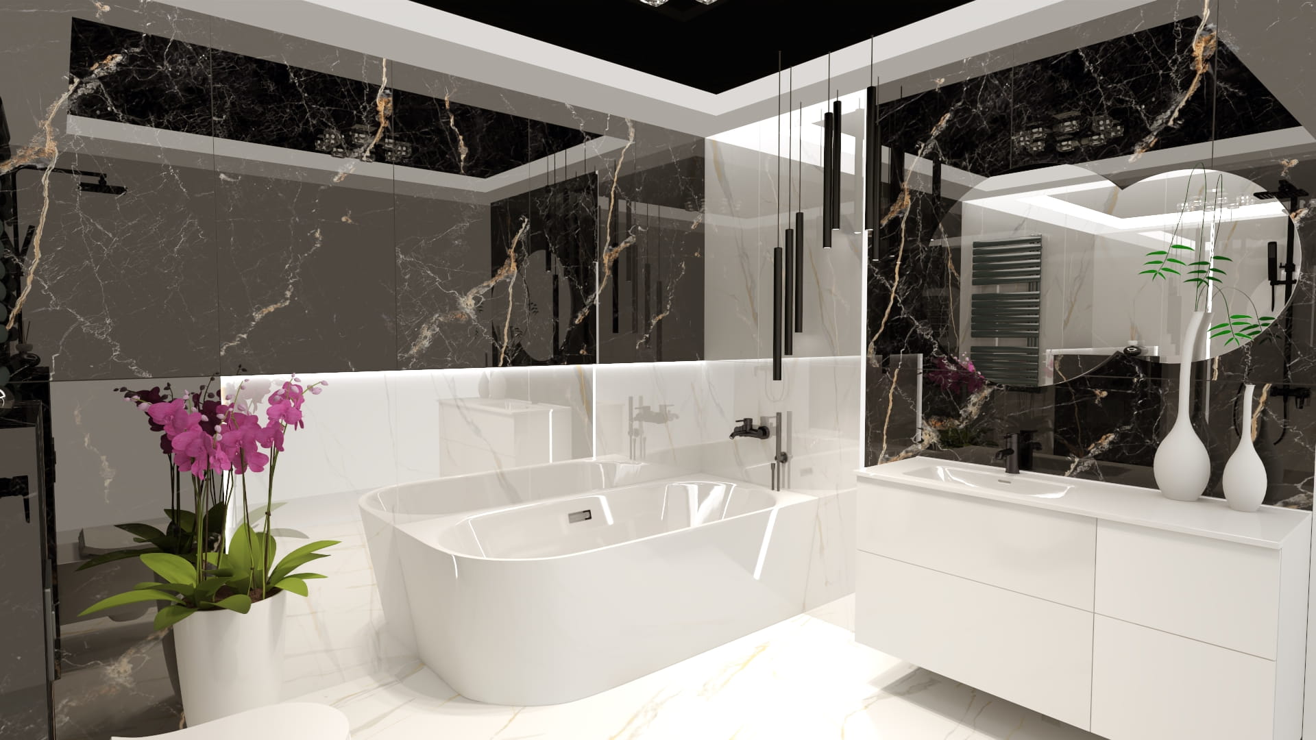 Czarny marmur, EGEN, Połączenie płytek Logan Snow i Cosmic Black do łazienki, Poler, Weekendowe Cuda Cenowe