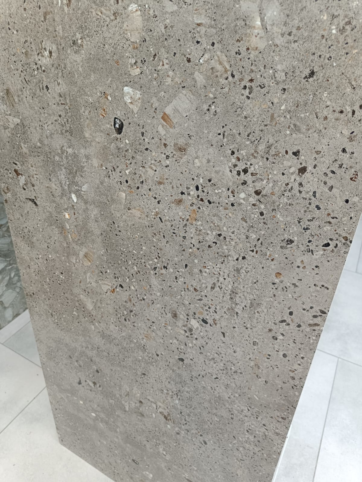Gres Terrazzo Flash Grey Carving 60×120 GAT I – nowoczesne lastryko w szarym wydaniu Dlaczego Flash Grey Carving to taki modny i ponadczasowy hit? Chcesz wnętrze, które jest nowoczesne, surowe i eleganckie, ale ma ten charakterystyczny detal lastryko, który od razu przyciąga wzrok? Gres Terrazzo Flash Grey Carving 60×120 GAT I to właśnie ta płytka – głęboka, grafitowo-szara baza z drobnymi wtrąceniami bieli, brązu i czerni + subtelna, wyczuwalna faktura carving. Duży format daje efekt jednej, m