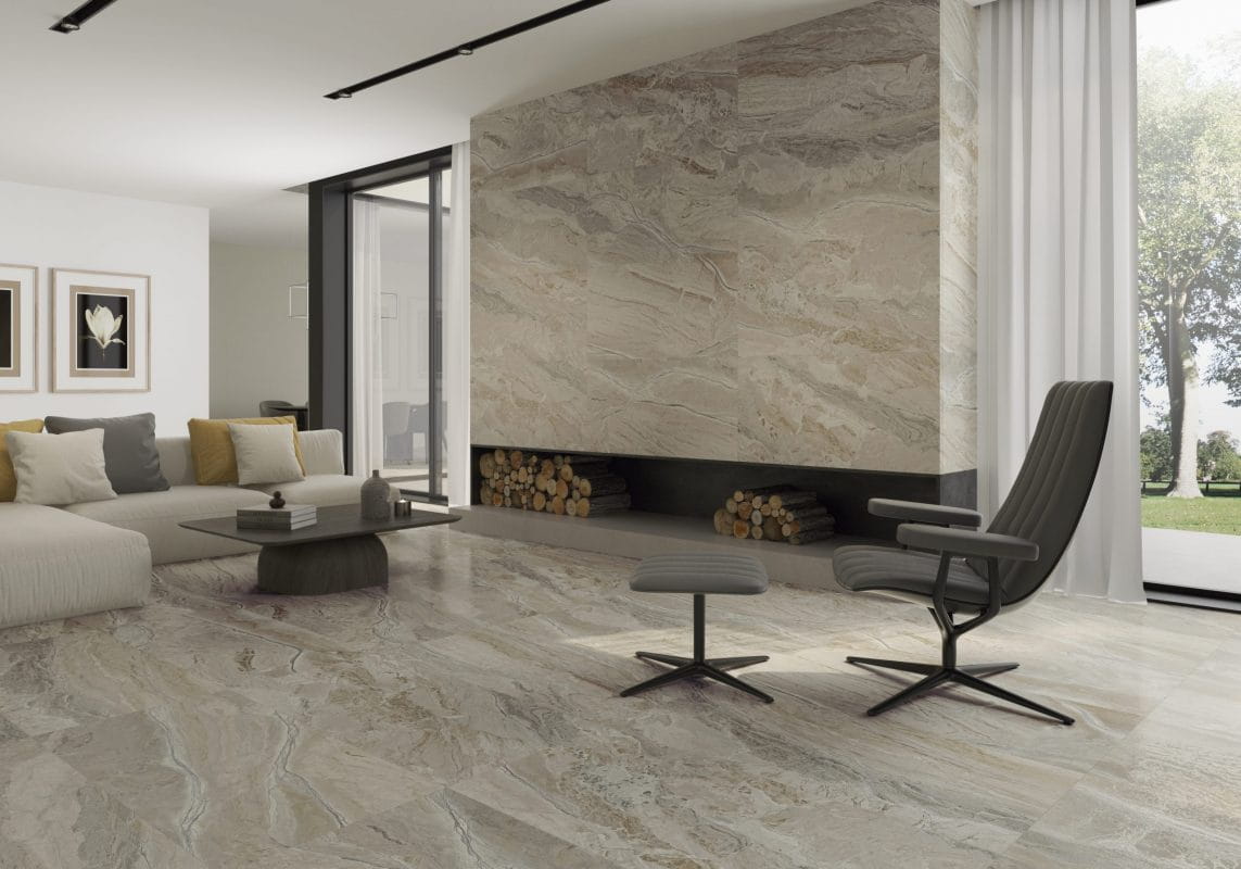 Gres EARTH SONG NATURAL 60×120 cm – ciepły beżowo-brązowy marmur-look To duży format gresu szkliwionego – jasne, ciepłe odcienie beżu i brązu z subtelnymi, naturalnymi przejściami i żyłkami imitującymi kamień lub piaskowiec. Matowa, gładka powierzchnia (szkliwiona, ale bez mocnego błysku) daje elegancki, przytulny efekt, a duży prostokąt 60×120 sprawia, że podłoga/ściana wygląda jak jedna wielka, monolityczna płyta z minimalną ilością fug. Idealny do wnętrz, gdzie chcesz ciepła, naturalności i