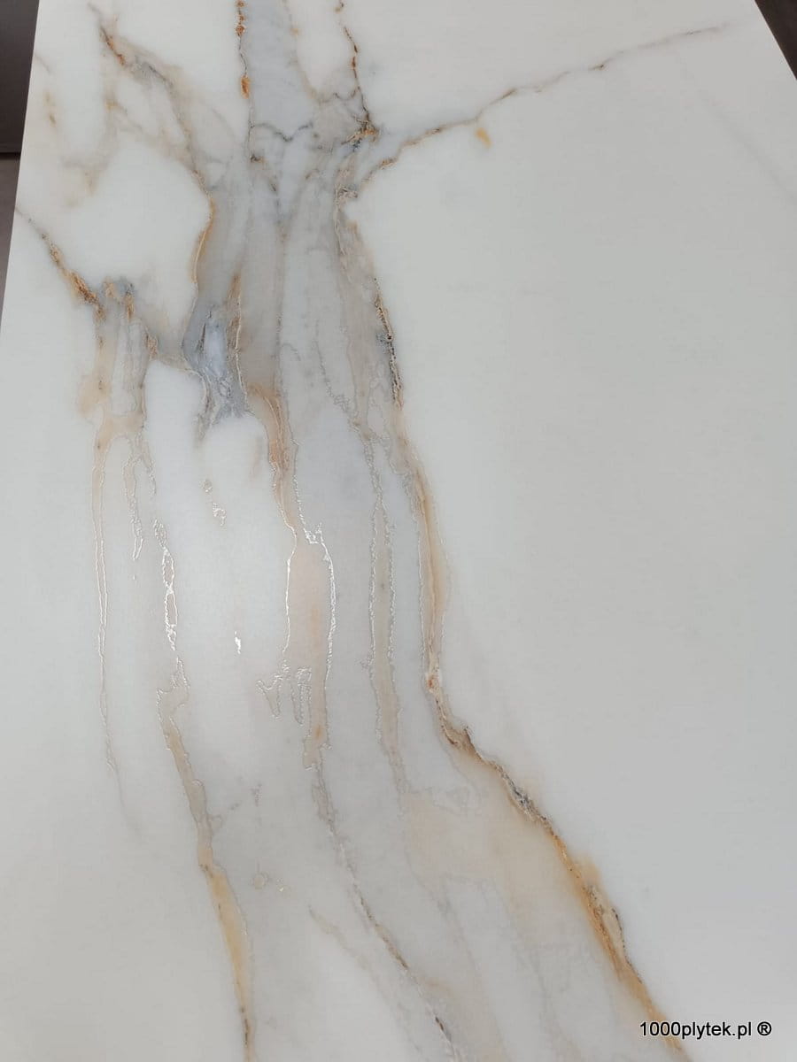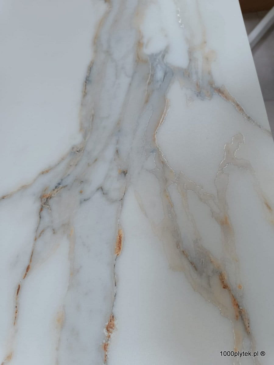 Gres Soul Gold 60×120 cm – marmur w złotym wydaniu z carvingiem To wielkoformatowy gres szkliwiony w bazowej, śnieżnobiałej tonacji z wyraźnymi, szarymi żyłami i subtelnymi złotawymi akcentami – klasyczny marmur w nowoczesnej, luksusowej wersji. Powierzchnia matowa z efektem carving (wyczuwalne 3D-żłobienia) sprawia, że płytka wygląda i czuć ją jak naturalny kamień – żyły połyskują pod różnym kątem światła, dając bardzo realistyczny efekt. Rektyfikowane krawędzie pozwalają na montaż z bardzo wąską fugą (1–2 mm), dzięki czemu całość tworzy wrażenie jednej wielkiej, monolitycznej płyty marmurowej. Idealny do wnętrz glamour, art deco, nowoczesnych, minimalistycznych i klasycznych – wszędzie tam, gdzie chcesz luksusu i elegancji. Najważniejsze cechy w skrócie Wymiary: 60 × 120 cm – duży prostokąt, minimalna liczba fug, efekt monolityczny i premium Grubość: ok. 9 mm Wykończenie: mat z carvingiem – strukturalna, trójwymiarowa powierzchnia imitująca marmur Antypoślizgowość: R9 (typowa dla matu carving w tym formacie) – bezpieczna na mokro Klasa ścieralności: PEI 4 – wytrzymała na codzienne użytkowanie w domu i lekkiej komercji Mrozoodporność: tak – niska nasiąkliwość, nadaje się na taras, balkon, loggię, elewację Rektyfikacja: tak – precyzyjne krawędzie, fuga 1–2 mm, czysty, jednolity efekt Opakowanie: 2 szt. = 1,44 m² Gatunek: I – najwyższa jakość, bez wad widocznych gołym okiem Gdzie najczęściej kładzie się Soul Gold 60×120 łazienki premium – cała ściana lub strefa prysznica – biały marmur ze złotymi żyłami + złota / czarna armatura = luksus hotelowy kuchnie glamour/art deco – pas nad blatem lub wyspa – kontrast z czernią, złotem, drewnem lub stalą salony i jadalnie – feature wall za sofą lub TV – dodaje blasku i elegancji tarasy, balkony, loggie – mrozoodporny, antypoślizgowy, nie pęka na mrozie biura, recepcje, salony usług – biały marmur ze złotymi akcentami wygląda profesjonalnie i prestiżowo na ścianę – jako cała łazienka, kuchnia, salon lub korytarz – jasny, luksusowy akcent Czyszczenie jest bardzo proste – zwykły mop + neutralny detergent. Mat + carving nie pokazuje smug jak poler, a żłobienia nie zbierają brudu. Dlaczego ludzie wybierają Soul Gold 60×120 GAT I klasyczny marmur biały + szare żyły + złote akcenty – wygląda jak prawdziwy, luksusowy marmur Calacatta Gold duży format 60×120 – mniej fug i cięcia, szybszy montaż, monolityczny, bardzo drogi wygląd mat + carving + R9 = bezpiecznie, elegancko i realistycznie (lepsze niż poler w mokrych strefach) rektyfikacja – wąska fuga, efekt jednolitej, wielkiej płyty mrozoodporny – jedna płytka na całą posesję: podłoga w domu + taras + cokół łatwo łączy się z czernią, złotem, bielą, drewnem – zawsze wygląda prestiżowo i nowocześnie Krótko: jeśli szukasz wielkoformatowego gresu, który wygląda jak naturalny marmur Calacatta Gold, jest antypoślizgowy, trwały i nie boi się wilgoci – Soul Gold 60×120 GAT I to jeden z najlepszych wyborów. Po ułożeniu z wąską fugą robi wrażenie „to jest prawdziwy marmur, tylko tańszy, lżejszy i bez ryzyka pęknięć”. Darmowa dostawa od 2650 zł – przy zakupie 10–15 m² transport jest bezpłatny.