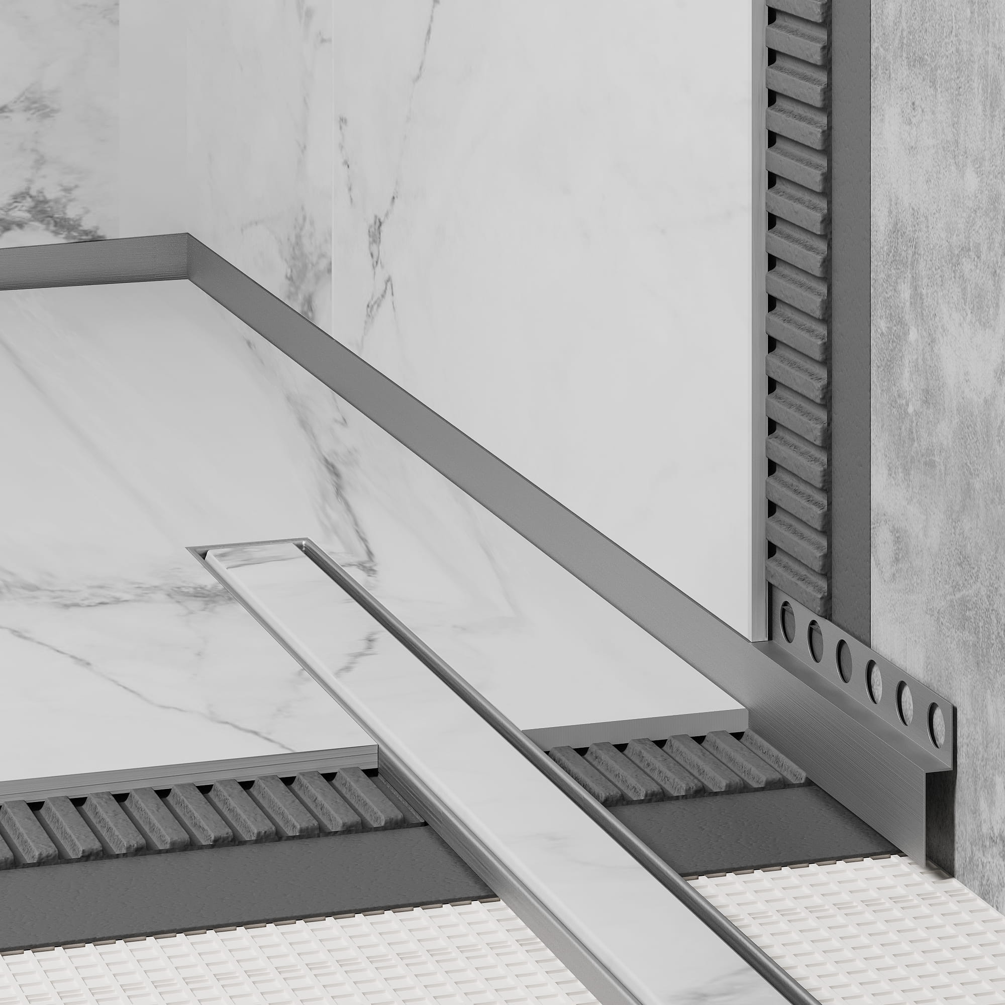 Listwy brodzikowe frontowe – eleganckie i funkcjonalne rozwiązanie do systemu odpływu liniowego w kabinie prysznicowej. W połączeniu z listwami spadkowymi eliminują konieczność montażu brodzika, co gwarantuje kompletną i estetyczną obróbkę. Dzięki temu rozwiązaniu, brodzik spełnia najwyższe standardy zarówno pod względem technicznym, gwarantując właściwe odprowadzanie wody, jak i wizualnym, nadając łazience elegancki charakter.