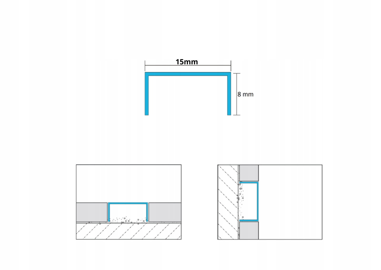 Listwy dekoracyjne typu „U”  wykonane są z najwyższej jakości kwasoodpornej stali nierdzewnej, wyróżniają się solidną grubością materiału 0.8mm. . Listwy typu “U” w odróżnieniu od pozostałych uniwersalnych listew różnią się tym, że ich krawędzie tworzą kąt 90°. Taki kształt przekroju uzyskuje się, poprzez zabieg podcięcia krawędzi, który następuje przed procesem gięcia, dzięki czemu zastosowanie tego typu listew umożliwia bezfugowe lub minimalne użycie fugi w połączeniu z płytkami rektyfi