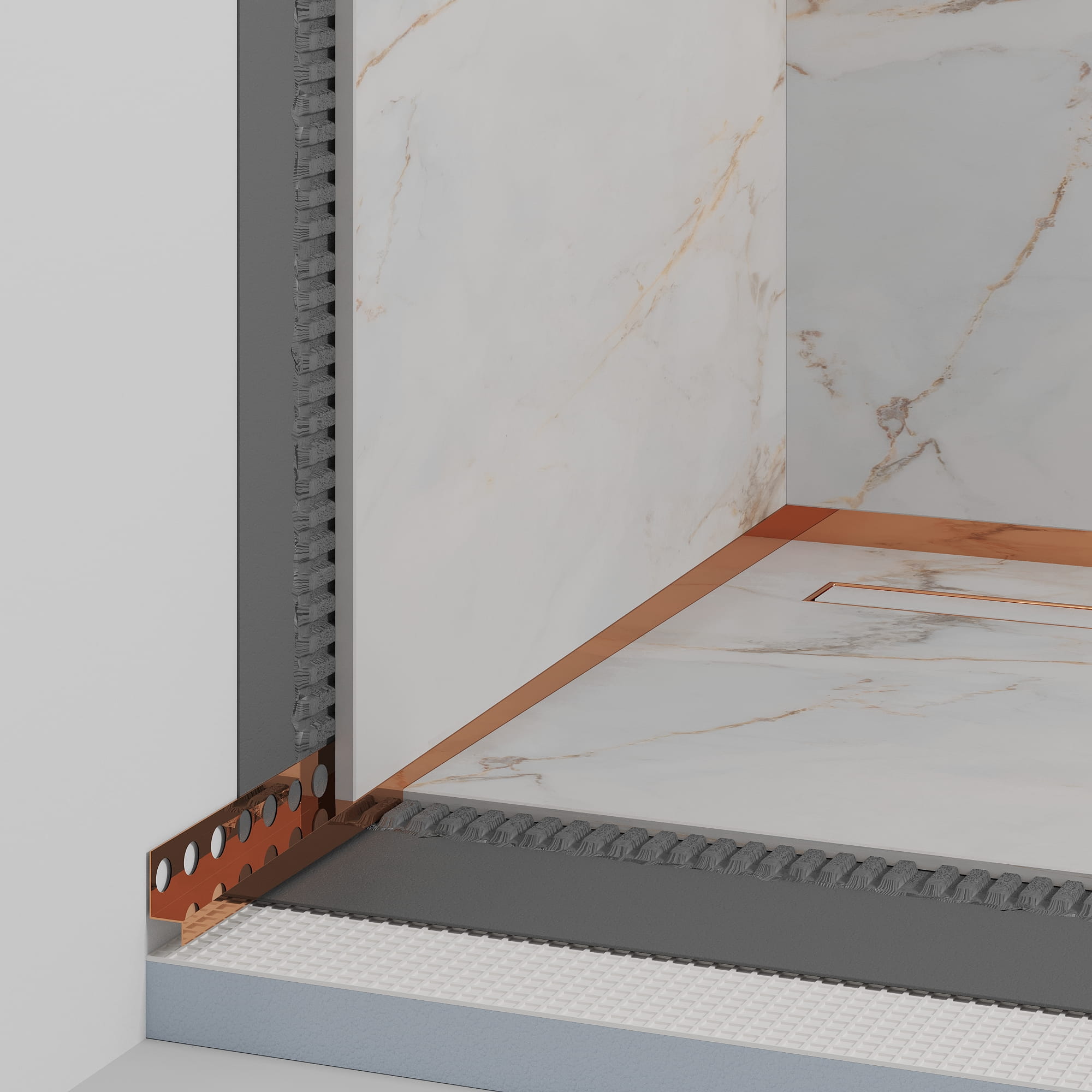 Celem listwy spadkowej jest maskowanie potencjalnie nieestetycznych zakończeń płytek, jednocześnie umożliwiając wykonanie naturalnego spadku w kierunku odpływu, bez konieczności precyzyjnego docinania płytek. Dzięki temu rozwiązaniu, brodzik spełnia najwyższe standardy zarówno pod względem technicznym, gwarantując właściwe odprowadzanie wody, jak i wizualnym, nadając łazience elegancki charakter.