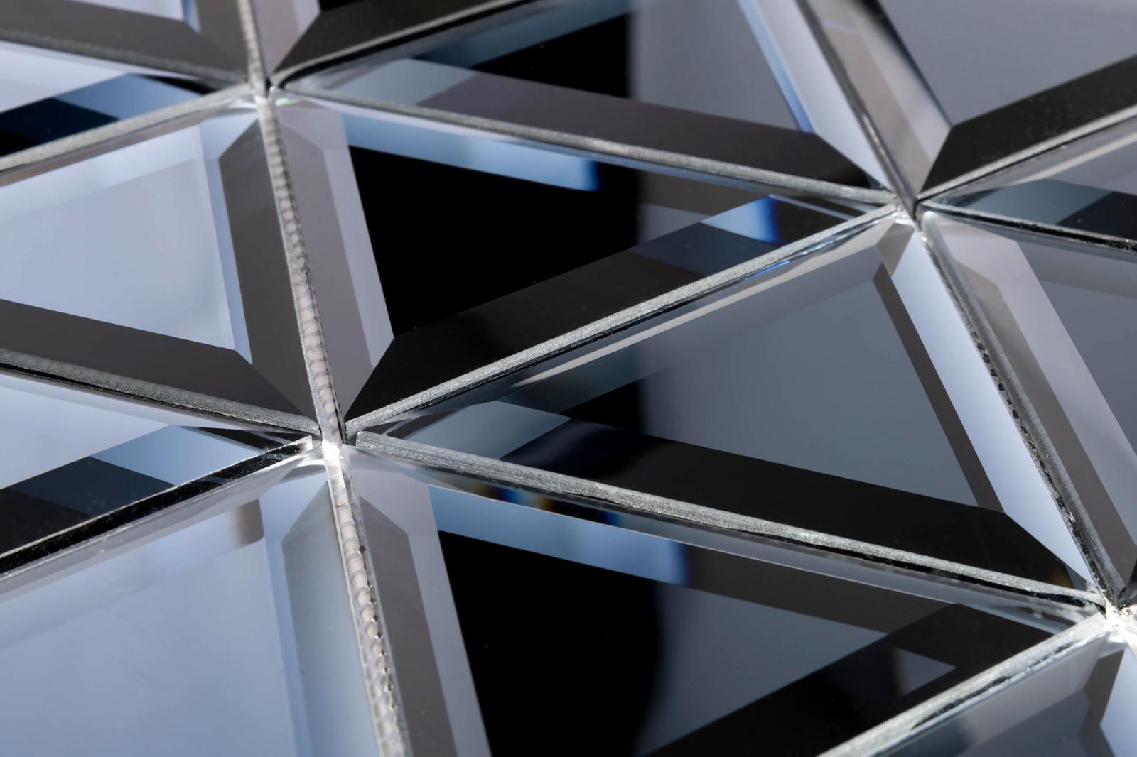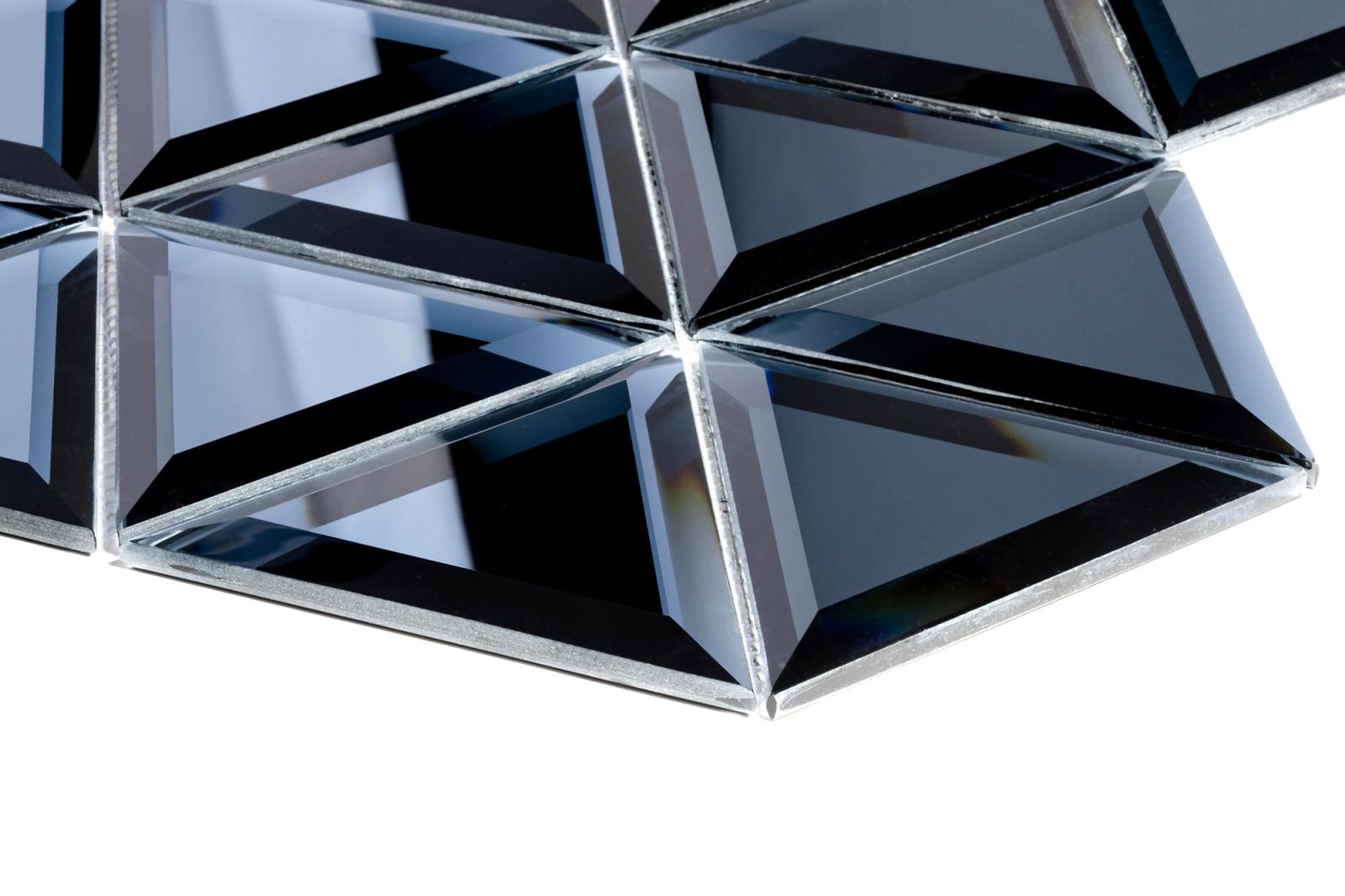Mozaika szklana Triangle Grafit 38×28,4 cm – grafitowa geometria 3D z lustrzanym blaskiem, która definiuje nowoczesny luksus Chcesz, żeby Twoja łazienka, kuchnia albo salon nagle wyglądały na „ciemny glamour / loft premium / nowoczesny industrial”, bez klejenia setek małych kostek i fugowania na kolanach? Triangle Grafit 38×28,4 to aktualnie jeden z najmocniejszych hitów trójkątnych lustrzanych mozaik w 2026 roku. Duże, geometryczne trójkąty w głębokim grafitowym kolorze z wysokim lustrzanym po