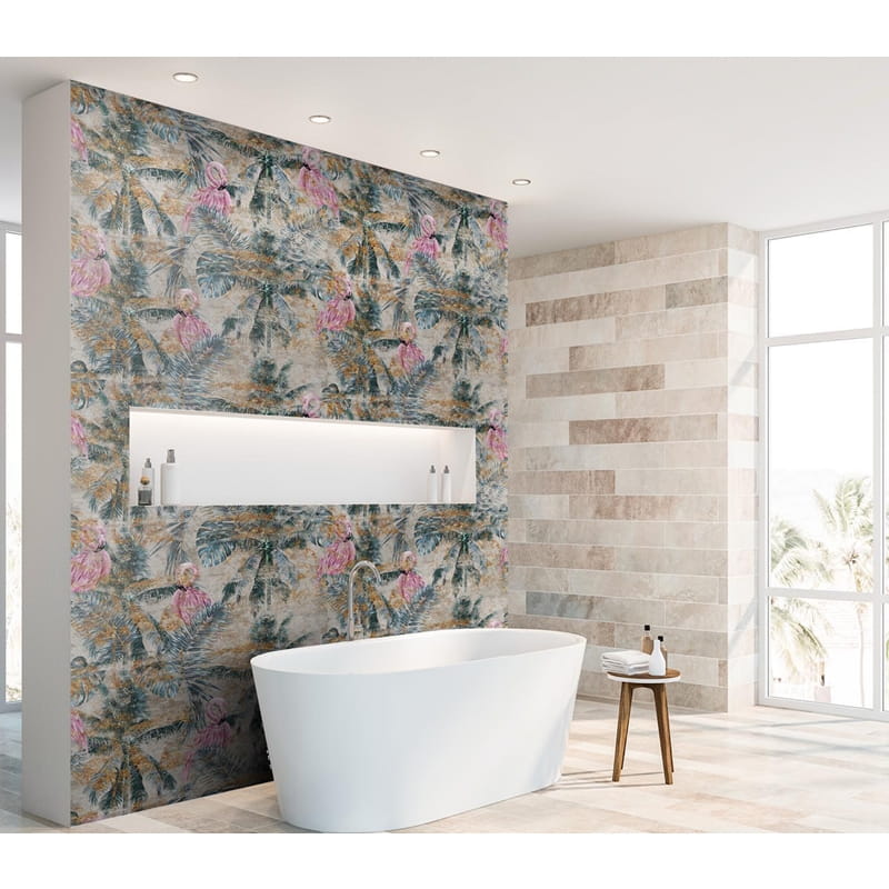 Mural Gresowy 120×120 Flamingo 4‑Elementy MAT – Tropikalny Panel Ścienny Opis Produktu Mural gresowy Flamingo 4‑elementowy 120×120 cm to dekoracyjny panel składający się z czterech płytek, które po połączeniu tworzą efektowny obraz flamingów. Matowe wykończenie nadaje płytkom elegancji i subtelności, a realistyczny nadruk ptaków wprowadza do wnętrza tropikalny, dekoracyjny klimat. Doskonały do łazienek, salonów, holi oraz przestrzeni komercyjnych, gdzie dekor ma przyciągać uwagę. Najważniej