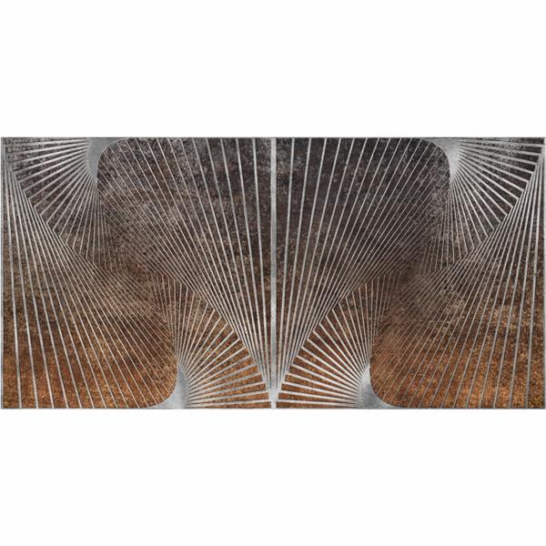 COPPER OPTIC SUGAR 60×120 – mural gresowy matowy COPPER OPTIC SUGAR 60×120 to nowoczesny mural gresowy o matowym wykończeniu, który łączy elegancję z designerskim, geometrycznym motywem. Inspiracją dla dekoru są efekty świetlne i metaliczne refleksy miedzi, które wprowadzają do wnętrza nowoczesny charakter, luksus i wyjątkowy styl. Geometryczny motyw z metalicznym efektem Mural COPPER OPTIC SUGAR wyróżnia się artystycznym wzorem geometrycznym z delikatnymi akcentami miedzi. Doskonal