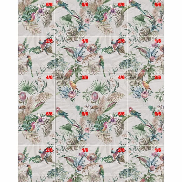 Mural gresowy Eden Grey 6/6 Mat 60×60 – ostatni element dekoracyjnej kompozycji Mural gresowy Eden Grey 6/6 Mat 60×60 to szósty panel sześcioczęściowego muralu z motywem papug i roślin w stonowanych odcieniach szarości. Jest to element dopełniający całą kompozycję, tworzący spójną, harmonijną dekorację ścienną. Najważniejsze cechy produktu Format: 60 × 60 cm – pasuje do pozostałych części muralu, umożliwiając pełne wykończenie dekoracji. Materiał: gres – trwały i odporny na wilgoć
