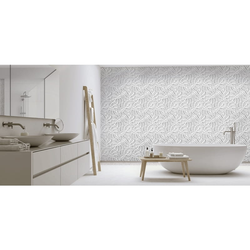 Mural gresowy 60×60 MONSTERA WHITE MAT