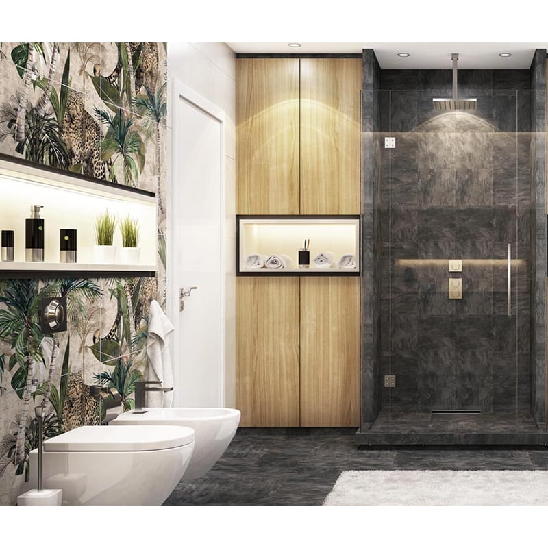 Mural gresowy Savanna 2/3/4 Mat 60×60 – organiczna sceneria sawanny Mural gresowy Savanna 2/3/4 Mat 60×60 to dekoracyjna płytka przedstawiająca roślinność sawanny – trawy i delikatne liście tworzą naturalny, harmonijny krajobraz. Matowe wykończenie i stonowana kolorystyka wprowadzają do wnętrza spokojny i relaksujący charakter. Cechy techniczne i zalety Format 60 × 60 cm – klasyczny wymiar, który pozwala na komponowanie muralowych paneli. Materiał: gres – bardzo trwały i odporny na wilgoć, co zapewnia długowieczność płytki. Powierzchnia matowa – elegancka, bez refleksów, nadaje naturalny wygląd i komfort użytkowania. Krawędzie rektyfikowane – umożliwiają montaż z cienką fugą, co daje efekt ciągłego obrazu. Motyw roślinny: sawanna – subtelne trawy i liście w stonowanych barwach tworzą spokojny krajobraz. Mrozoodporność – gres zastosowany w murale zapewnia odporność na zmienne warunki temperaturowe. Druk cyfrowy (Digital) – realistyczne odwzorowanie detali roślinności i traw. Zastosowanie w aranżacji wnętrz Łazienka Idealny fragment dekoracyjnej ściany nad wanną lub w kabinie prysznicowej, dodający naturalnego i relaksującego klimatu. Salon Może być częścią większej kompozycji muralowej lub subtelnym akcentem roślinnym za meblami. Sypialnia Roślinny motyw świetnie sprawdzi się za łóżkiem, wspomagając atmosferę wyciszenia i harmonii. Przedpokój Wprowadza naturalny akcent do strefy wejściowej, nadając przestrzeni lekkości i organicznego charakteru. Korzyści użytkowe Naturalny i stonowany design – motyw sawanny w neutralnych odcieniach. Wytrzymałość gresu – dekor będzie wyglądać znakomicie przez długi czas. Łatwa pielęgnacja – matowa powierzchnia jest praktyczna i estetyczna. Profesjonalny efekt muralowy – minimalne fugi dzięki rektyfikowanym krawędziom. Podsumowanie Mural gresowy Savanna 2/3/4 Mat 60×60 to elegancki fragment sawanny, który wprowadza do wnętrza naturalny i spokojny klimat. Idealny do łazienek, salonów, sypialni i przedpokojów, oferując trwałą dekorację ścienną o organicznym charakterze.