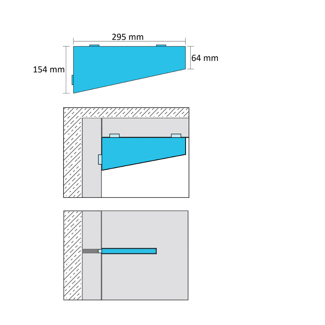Montaż półki odbywa się bez konieczności wiercenia otworów – wystarczy osadzić ją w szczelinie fugi przy użyciu silikonu sanitarnego lub kleju montażowego. To rozwiązanie: