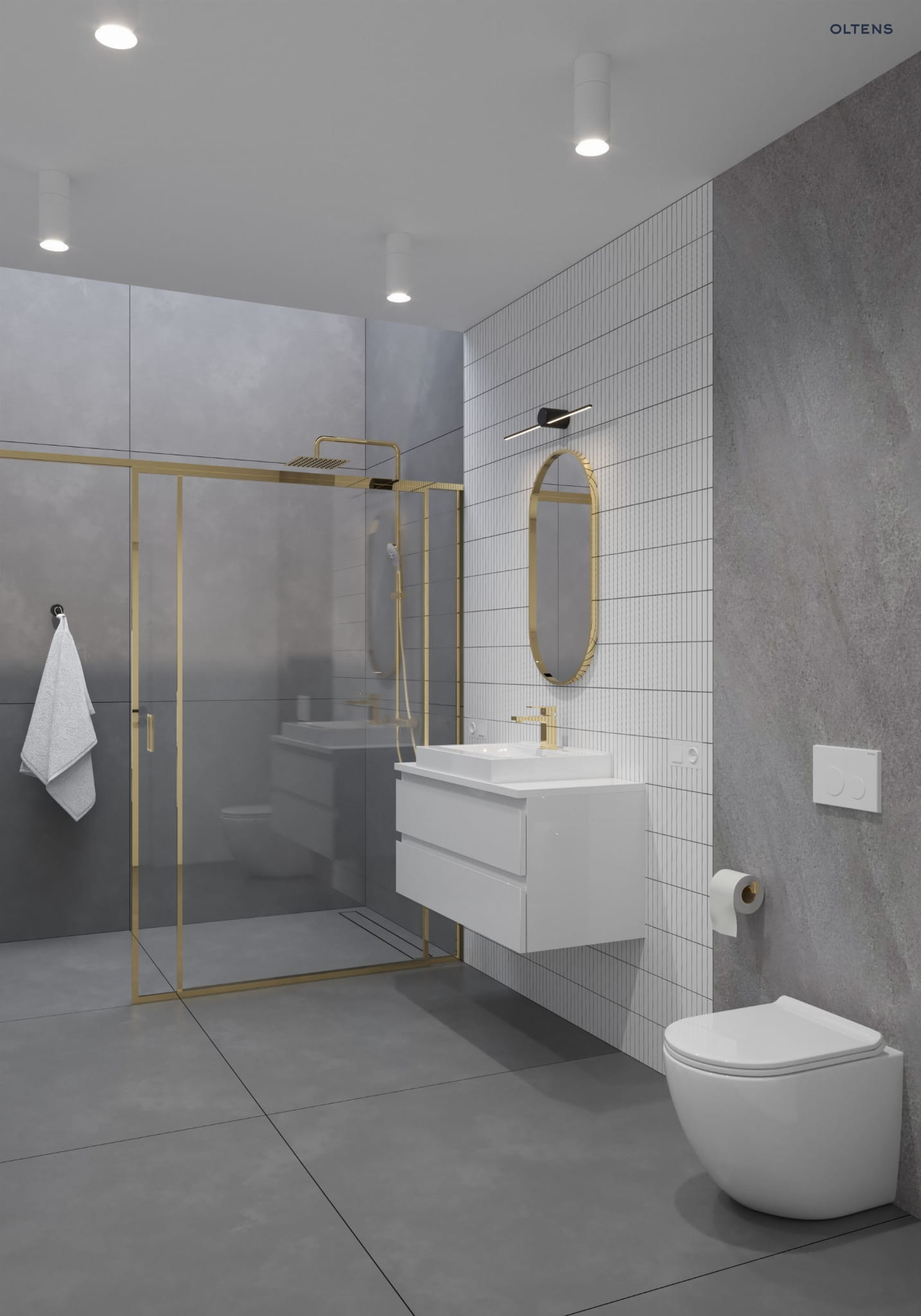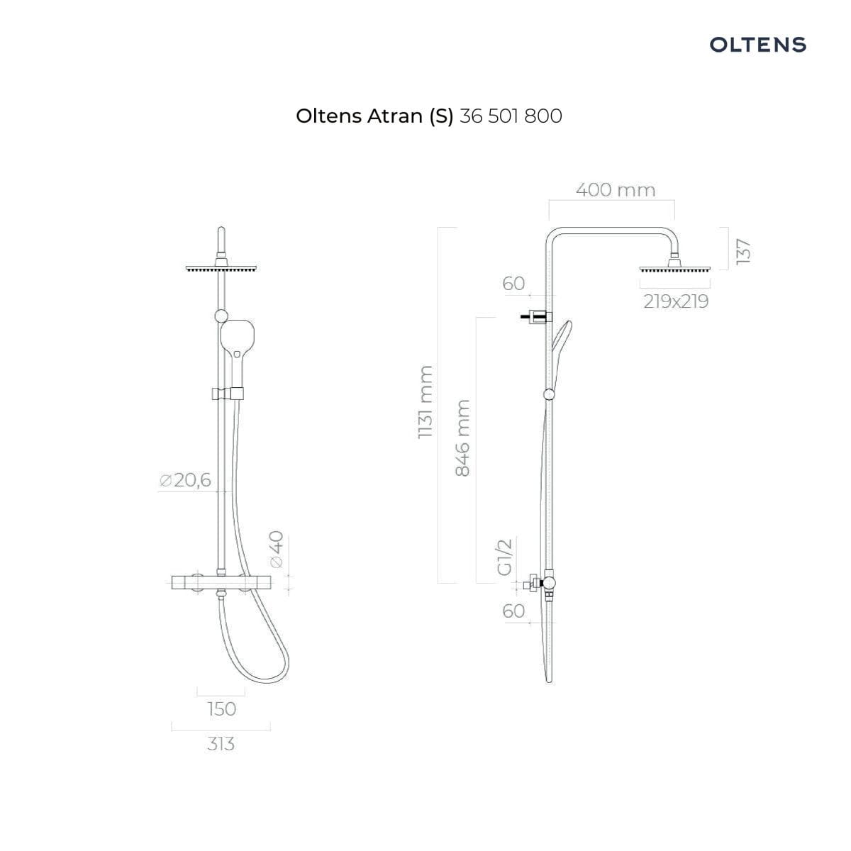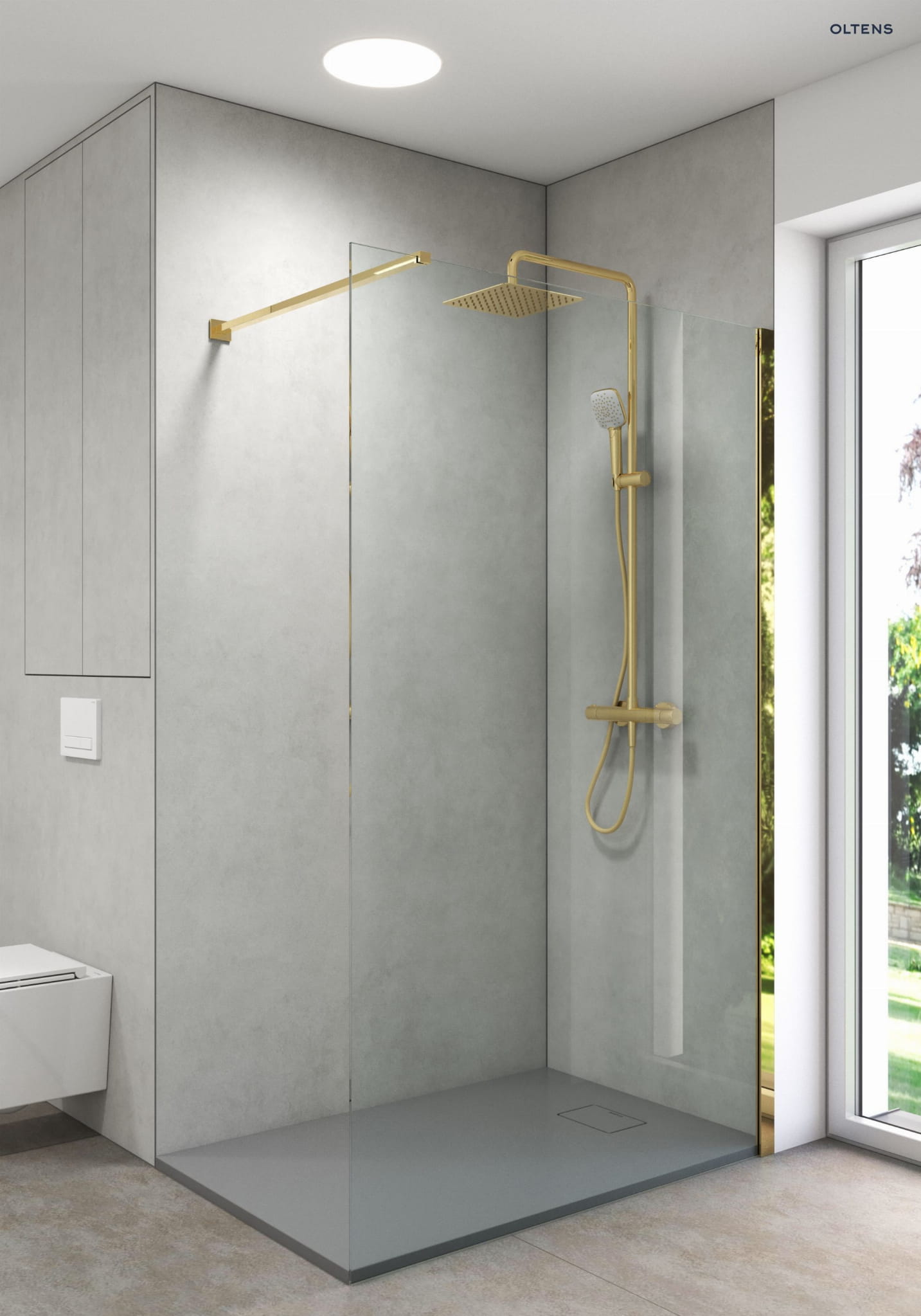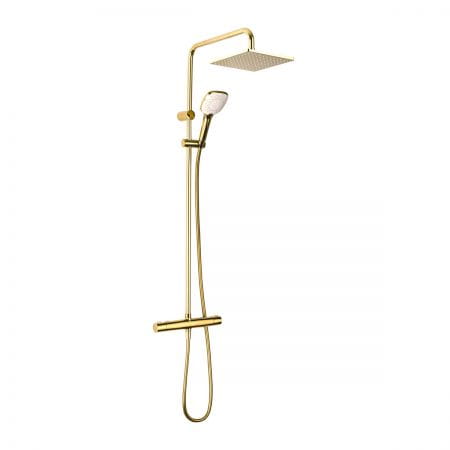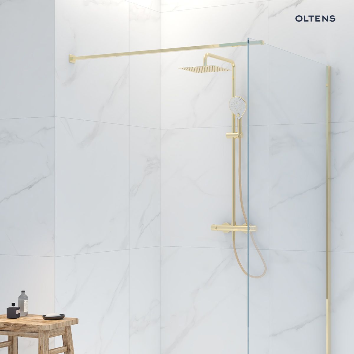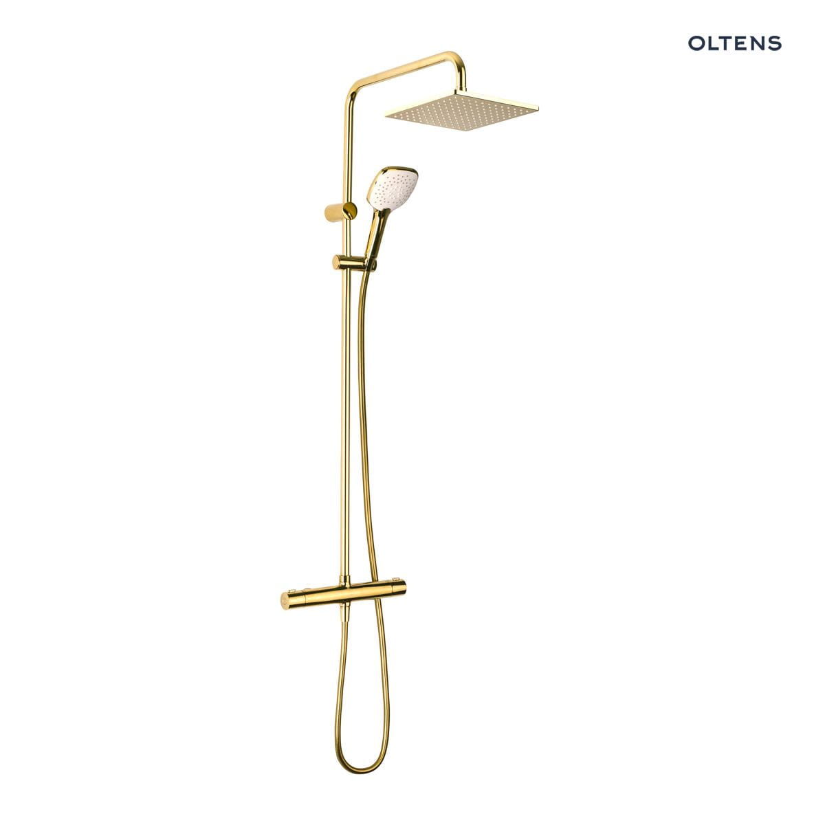 Oltens Atran (S) zestaw prysznicowy termostatyczny z deszczownicą kwadratową złoty 36501800