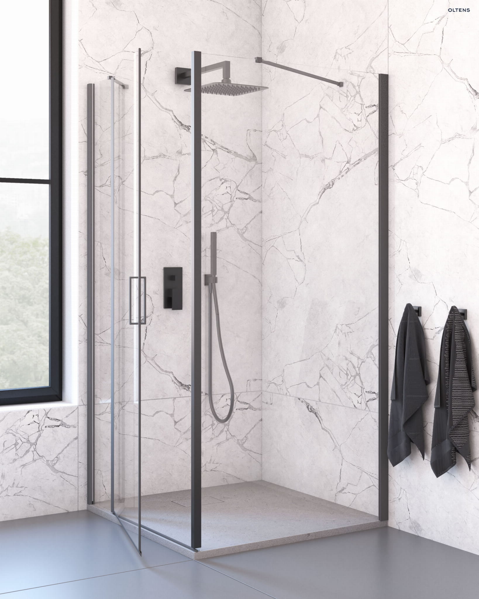 Oltens Bergytan brodzik kwadratowy 100×100 cm RockSurface szary 17102700