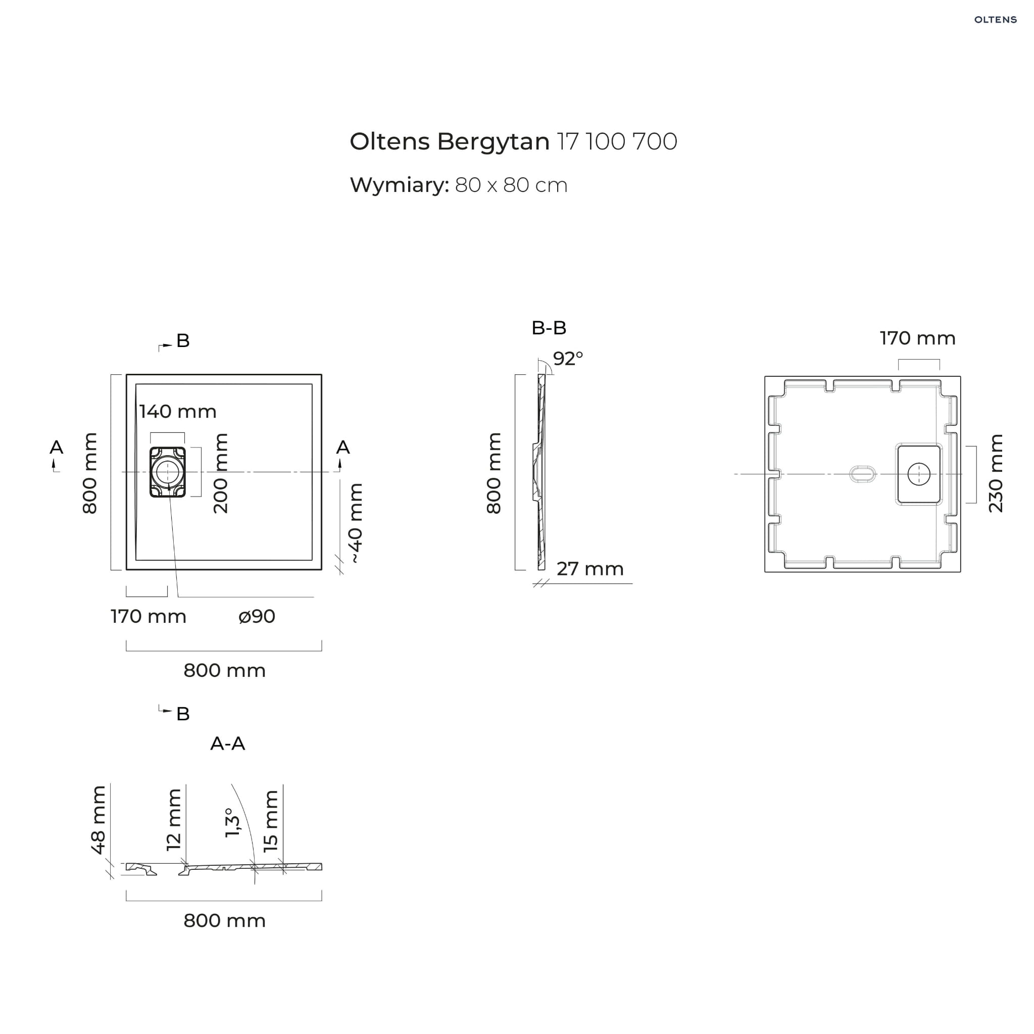 Oltens Bergytan brodzik kwadratowy 80×80 cm RockSurface szary 17100700