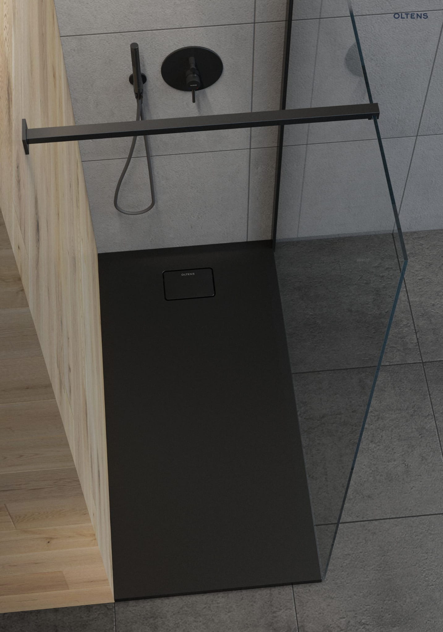 Oltens Bergytan brodzik prostokątny 140×80 cm RockSurface czarny 15106300