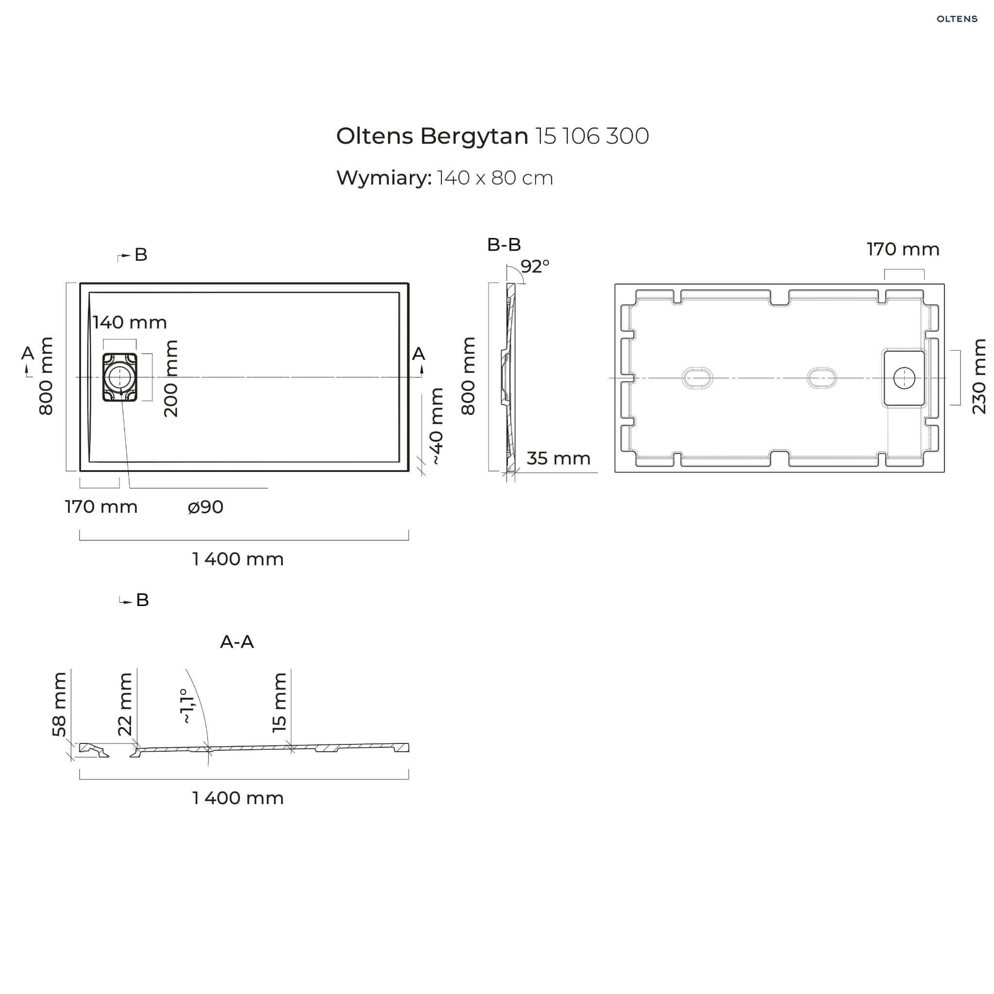 Kolekcja Bergytan Dłuższy bok 140.0000 Kolor czarny Krótszy bok 80.0000 Materiał Z konglomeratu Średnica odpływu 90.0000