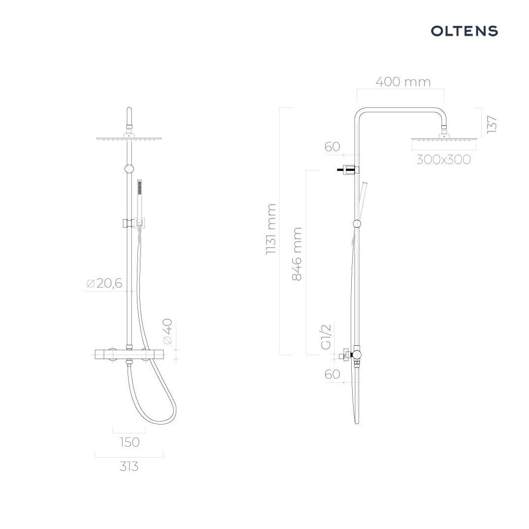 Oltens Boran zestaw prysznicowy termostatyczny z deszczownicą okrągłą czarny mat 36502300