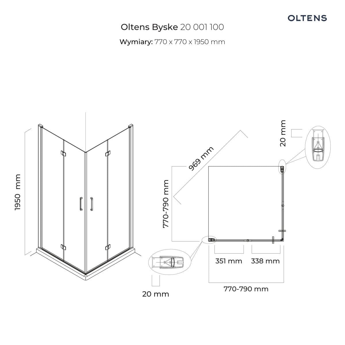 Oltens Byske kabina prysznicowa 80×80 cm kwadratowa 20001100