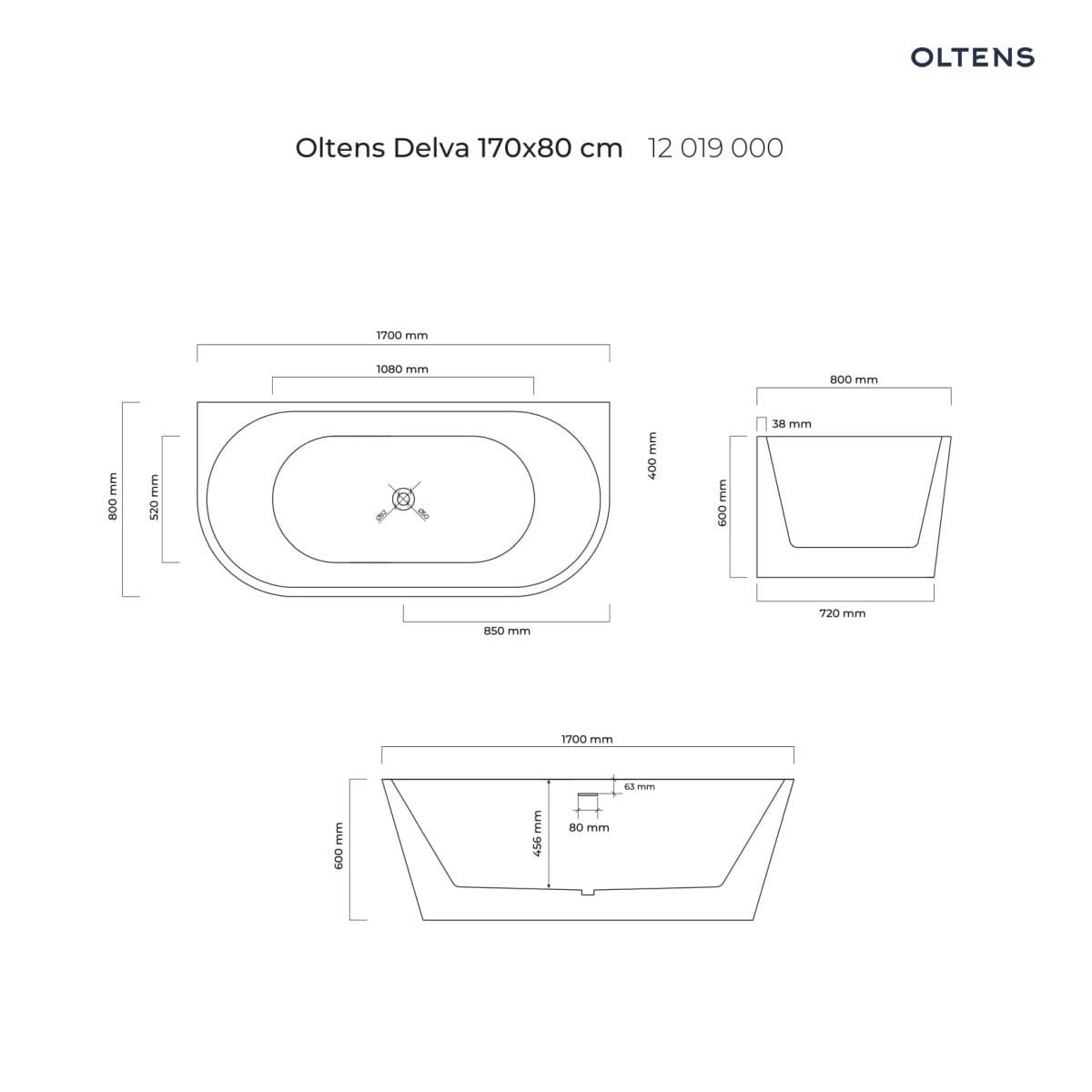 Oltens Delva wanna przyścienna 170×80 cm akrylowa owalna biała 12019000