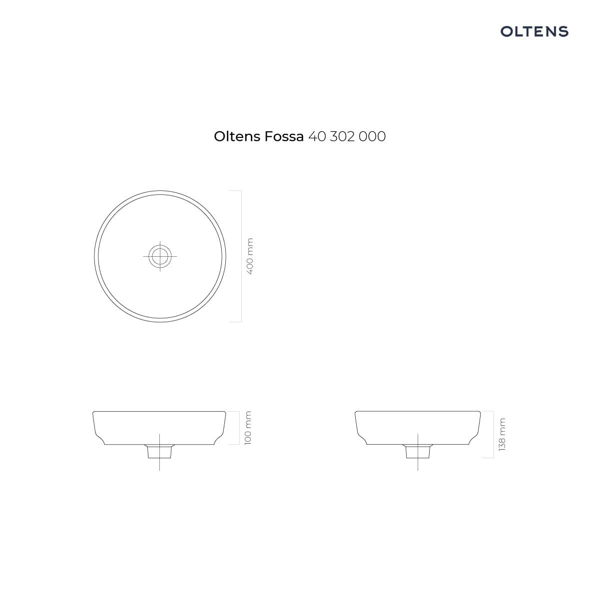 Oltens Fossa umywalka 40 cm nablatowa biała 40302000