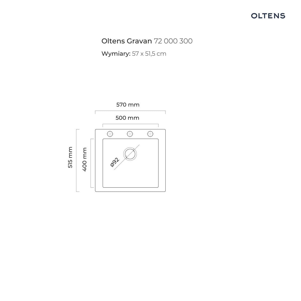 Oltens Gravan zlewozmywak granitowy 1 komorowy 57×51,5 cm czarny 72000300
