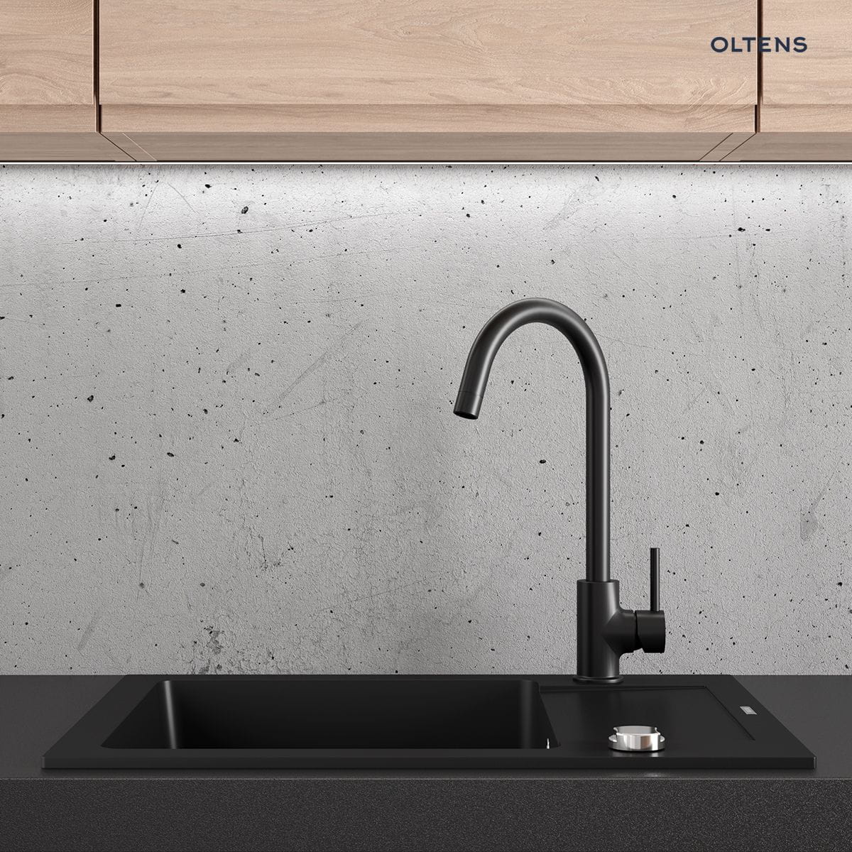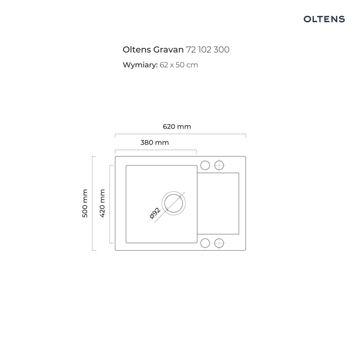 Oltens Gravan zlewozmywak granitowy 1 komorowy z krótkim ociekaczem 62x50cm czarny 72102300