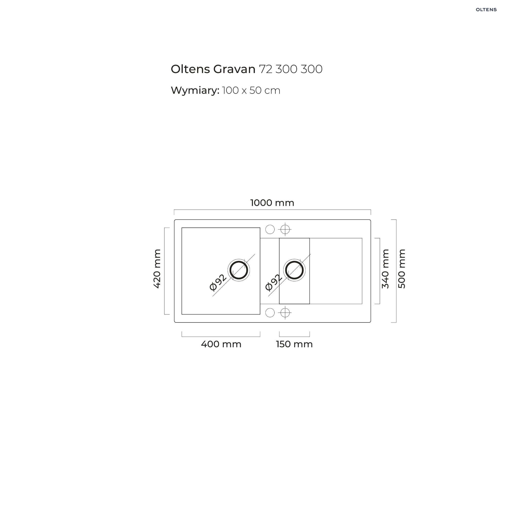 Oltens Gravan zlewozmywak granitowy 1,5-komorowy z ociekaczem 100×50 cm czarny mat 72300300