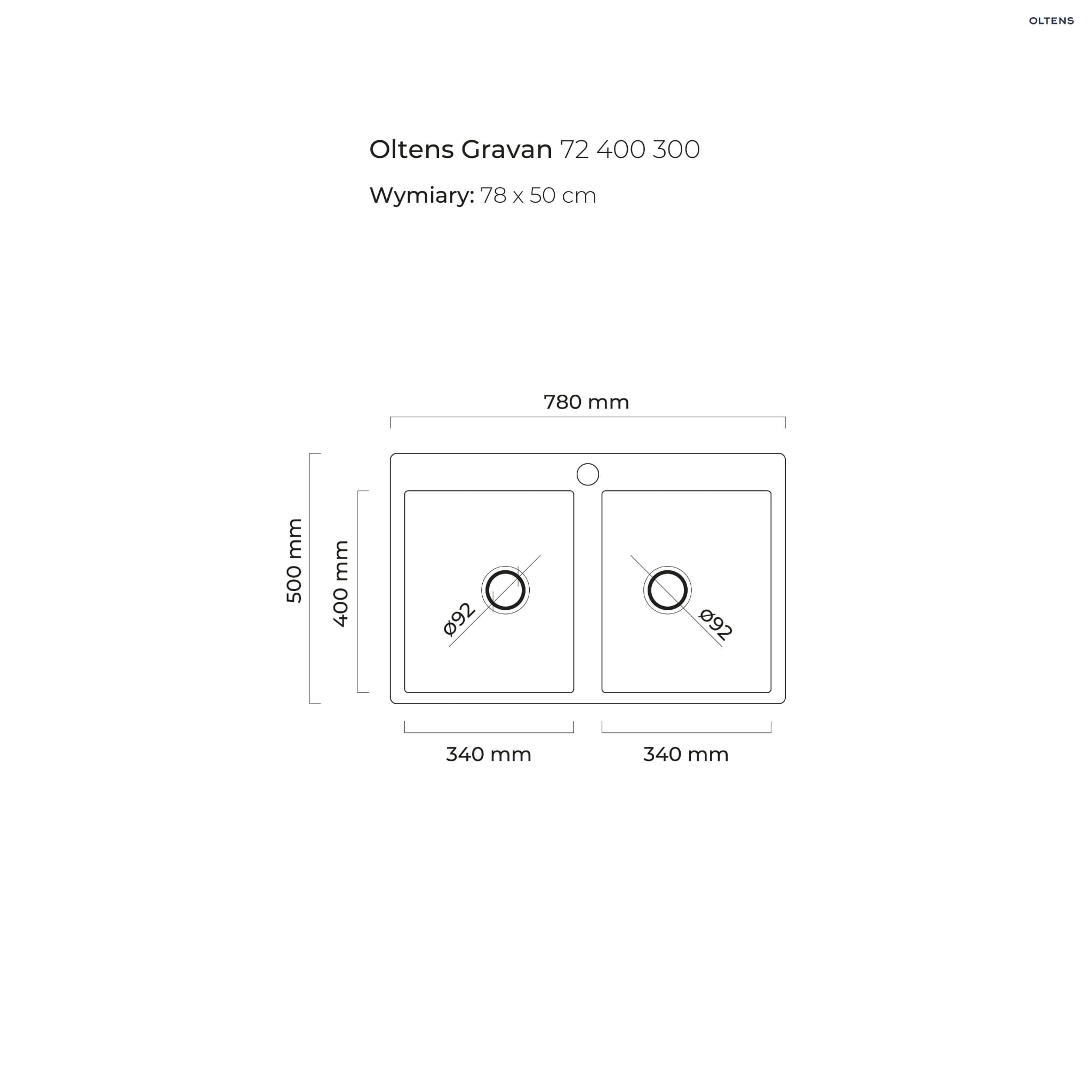 Oltens Gravan zlewozmywak granitowy 2-komorowy 78×50 cm czarny mat 72400300