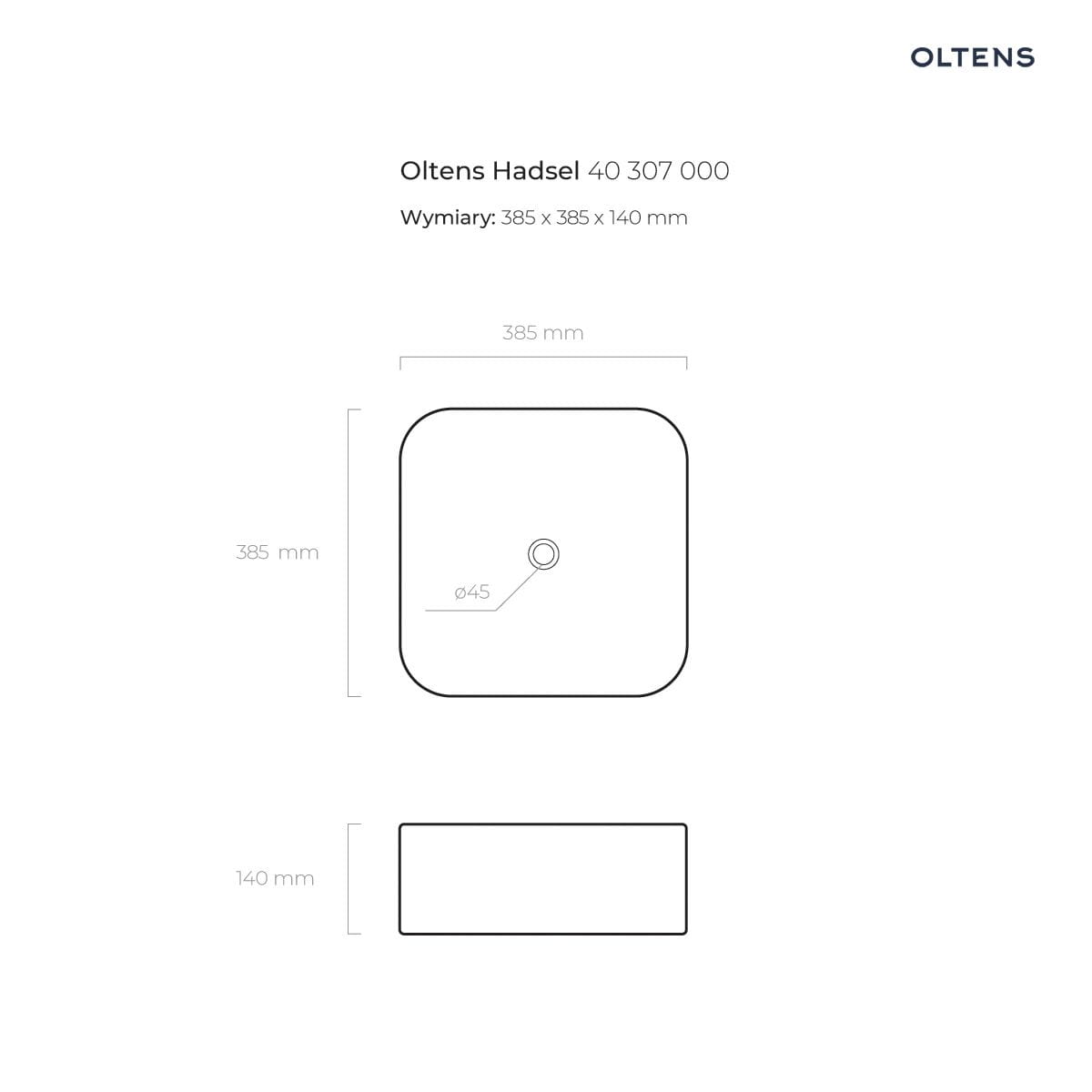 Oltens Hadsel umywalka 38,5 cm nablatowa kwadratowa biała 40307000