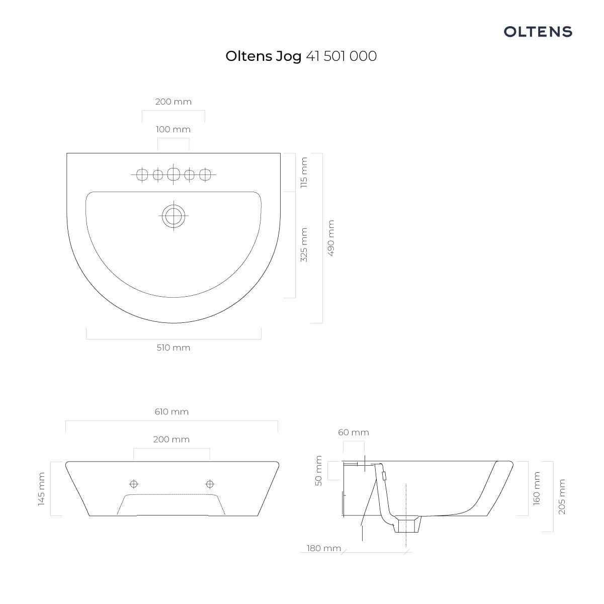 Oltens Jog umywalka 61×49 cm wisząca z powłoką SmartClean biała 41501000