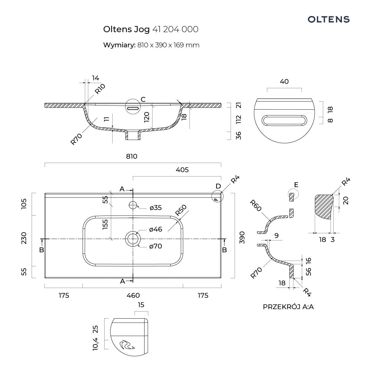 Oltens Jog umywalka 81×39 cm meblowa prostokątna biała 41204000